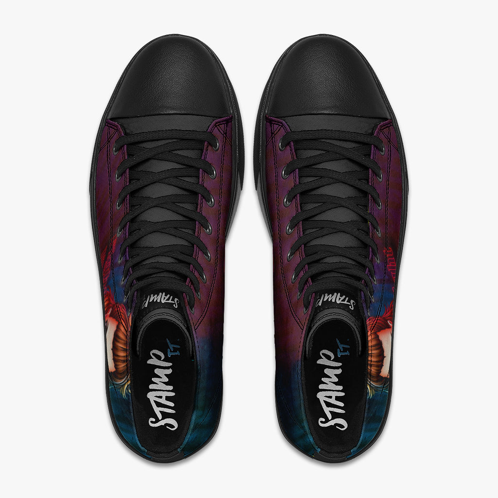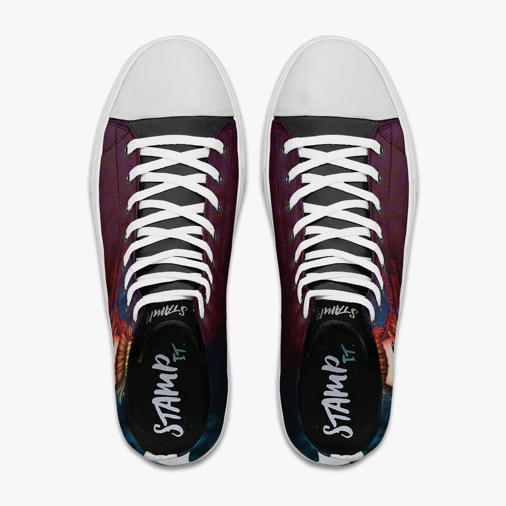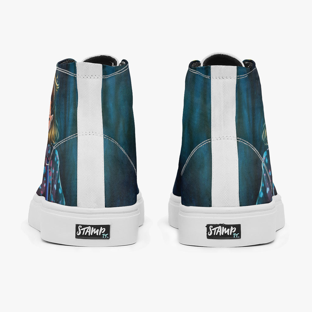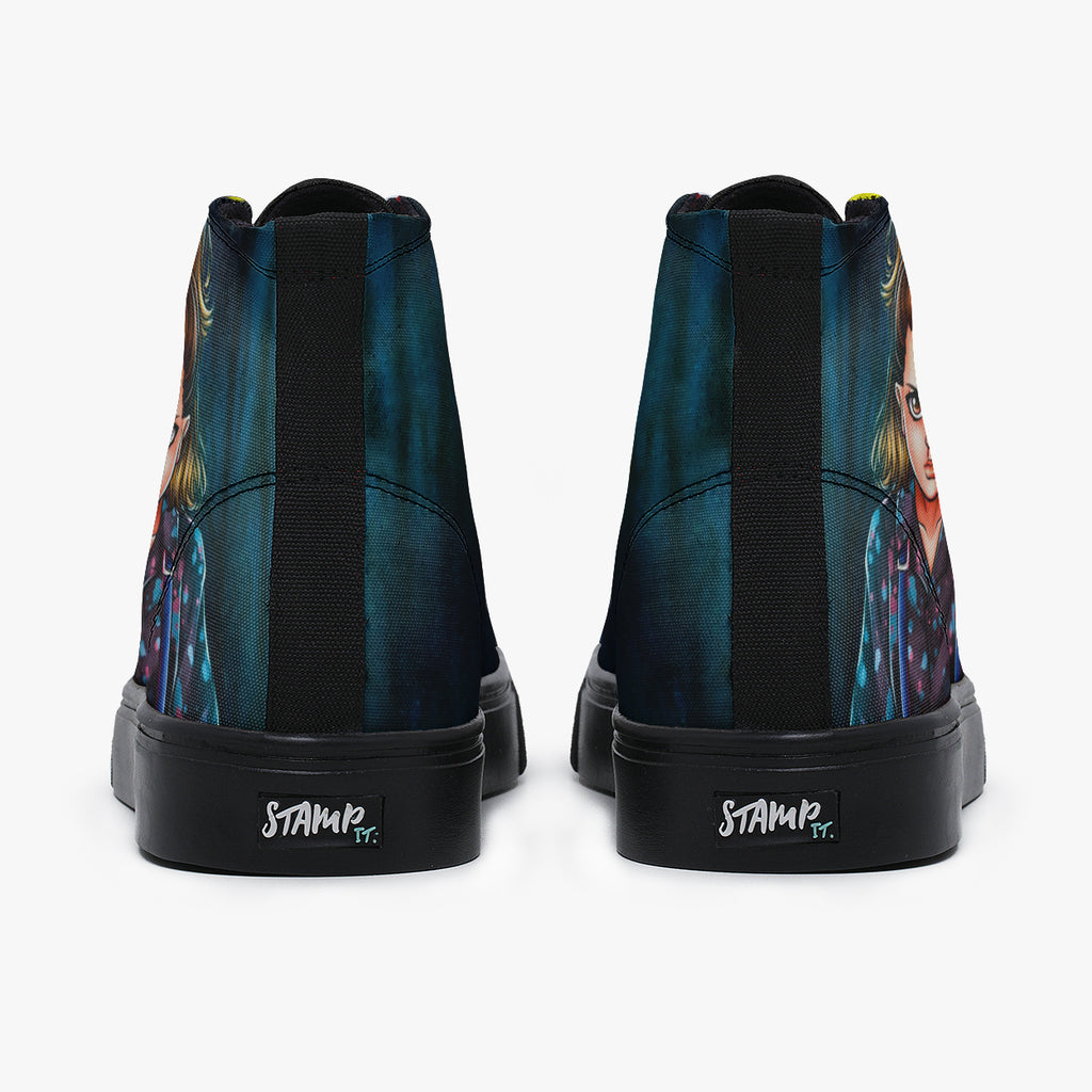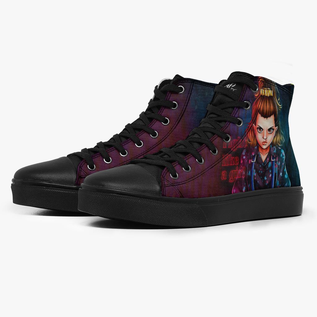 Tênis Cano Alto Stranger Things Fight and Bleed Like a Girl Series e Filmes, confeccionado em lona, com cores e estampas exclusivas.