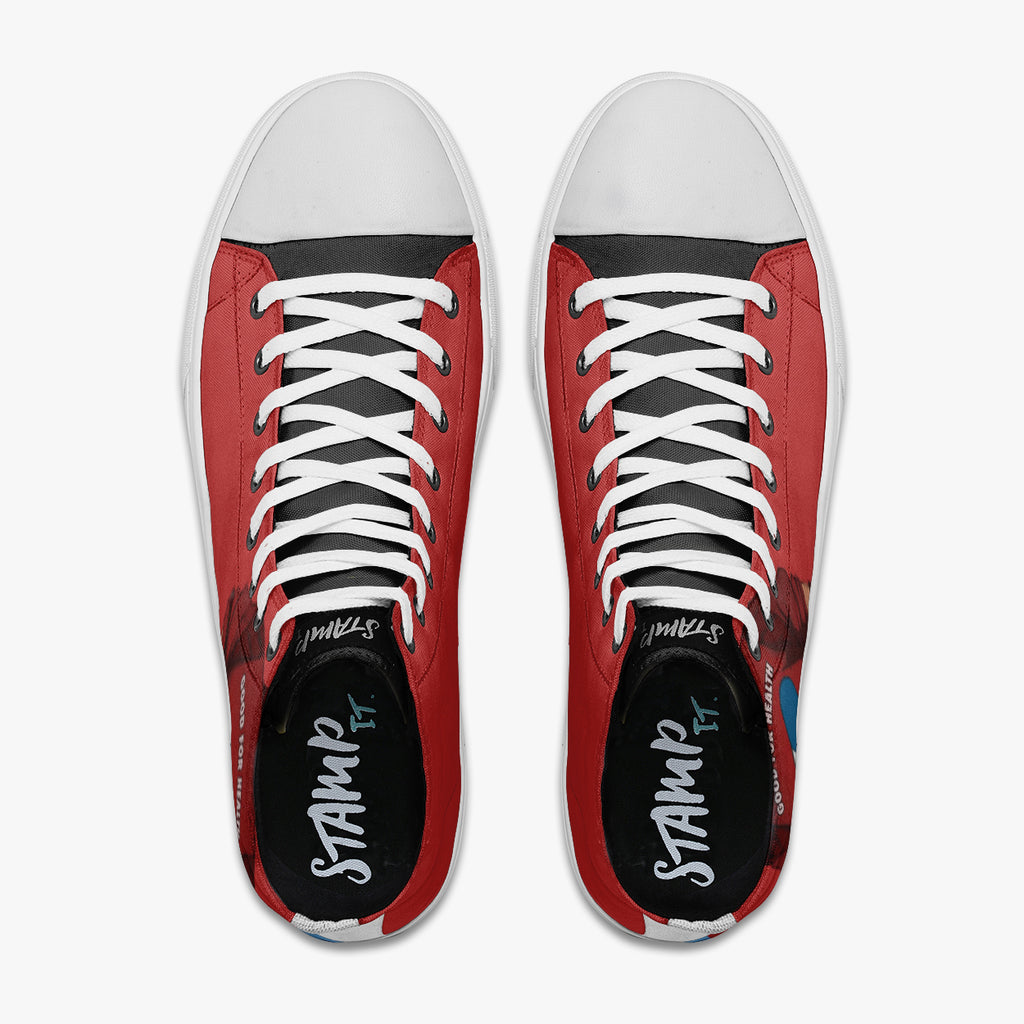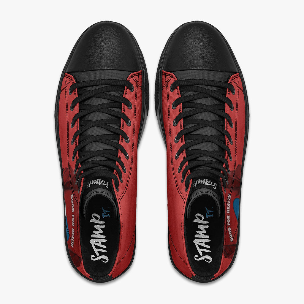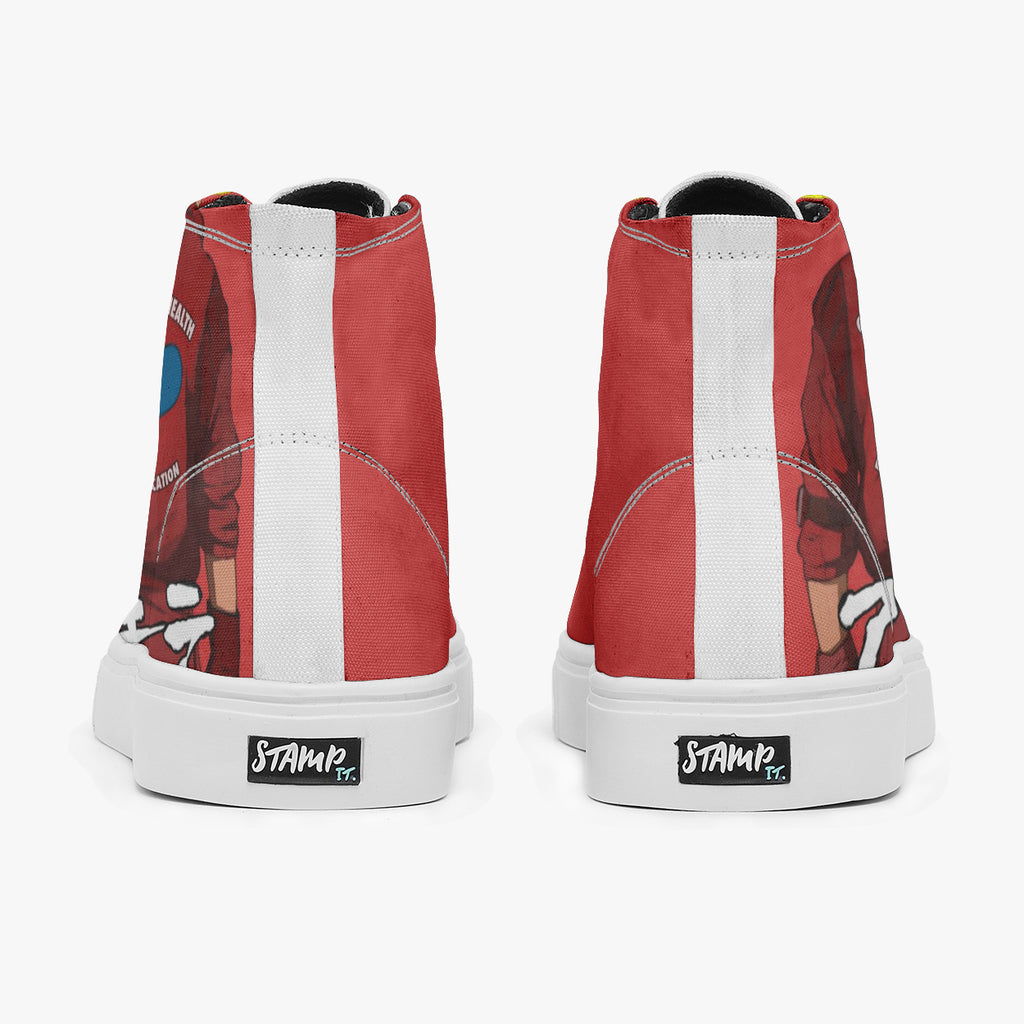 Tênis Cano Alto Vermelho Akira Neo Tokyo Good For Health Anime, confeccionado em lona, com cores e estampas exclusivas.