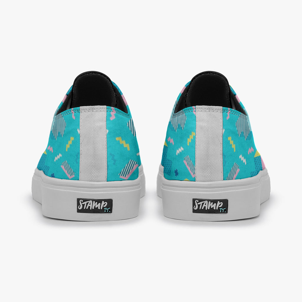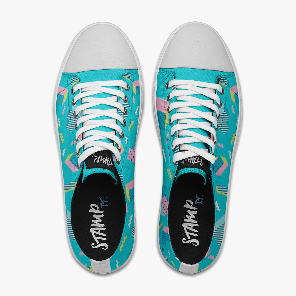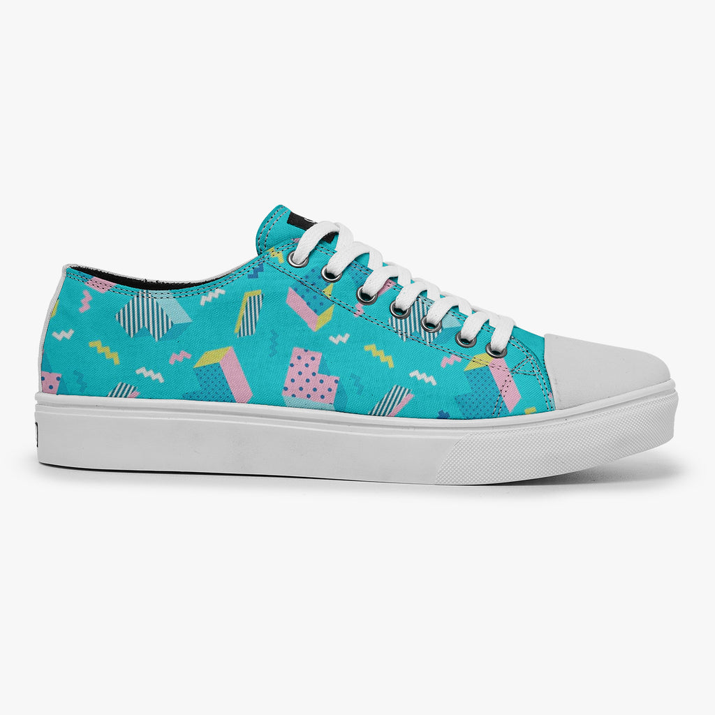 Tênis Cano Baixo Azul Geométricos Cubos Rosa Abstrato
