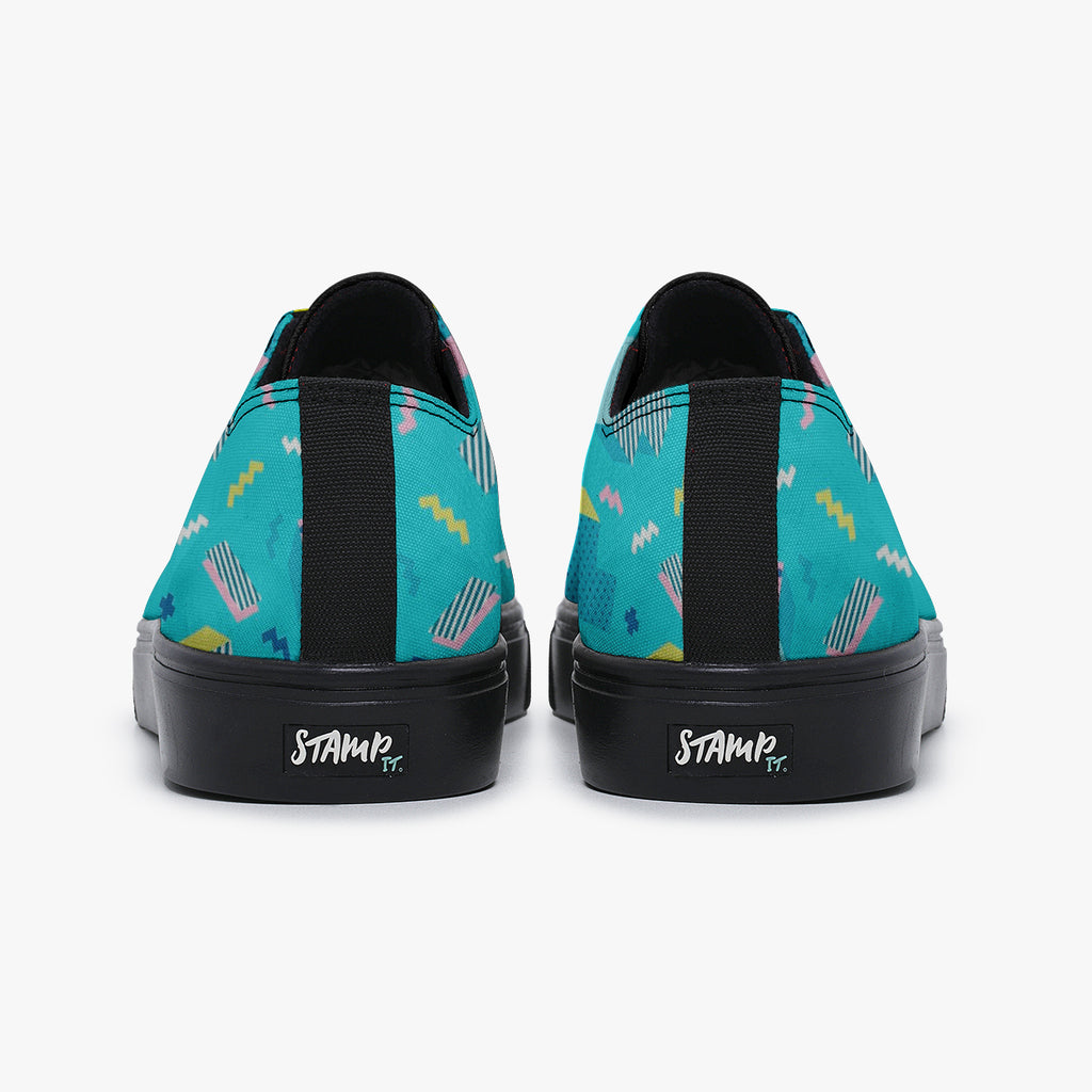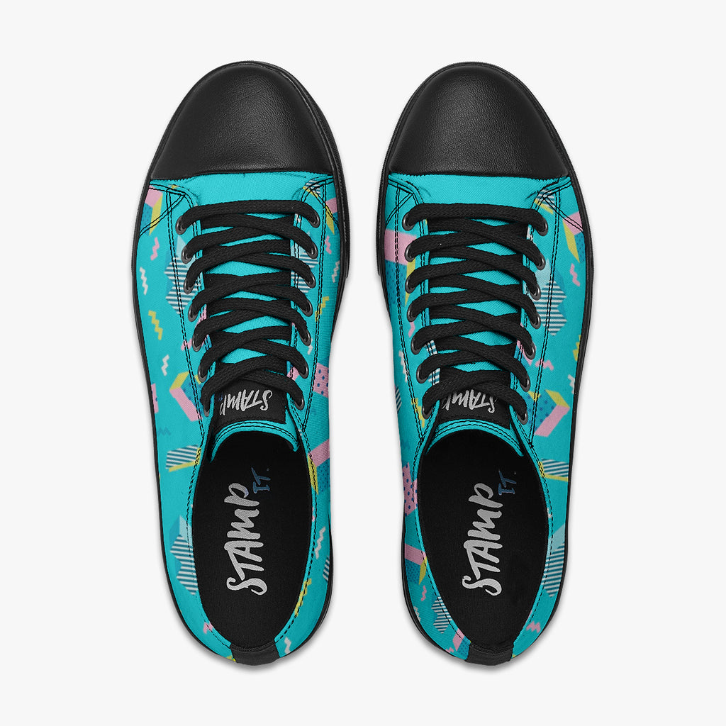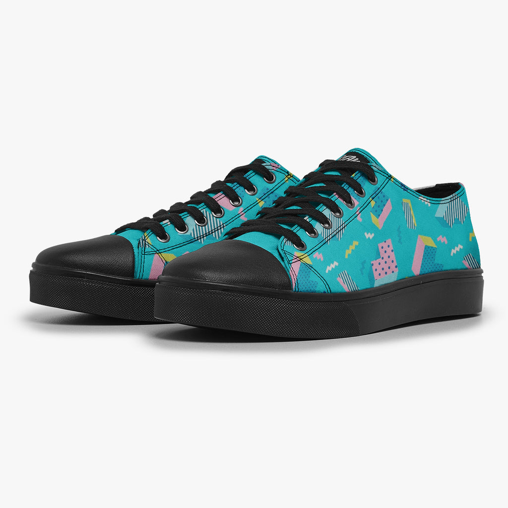Tênis Cano Baixo Azul Geométricos Cubos Rosa Abstrato