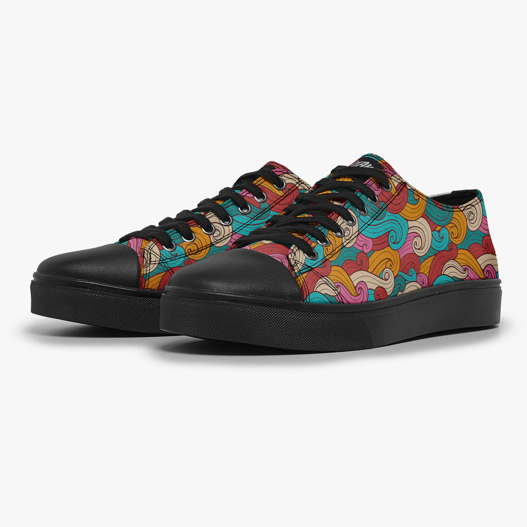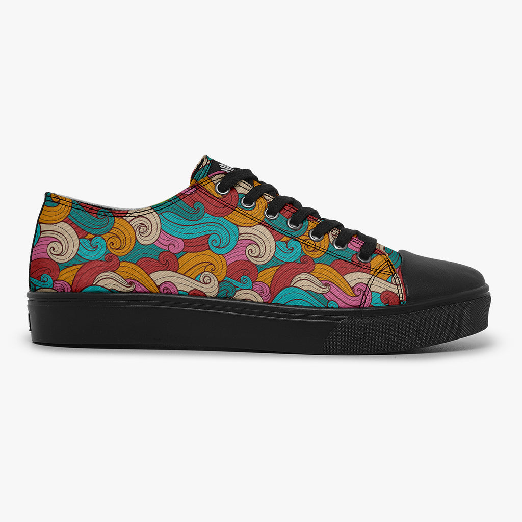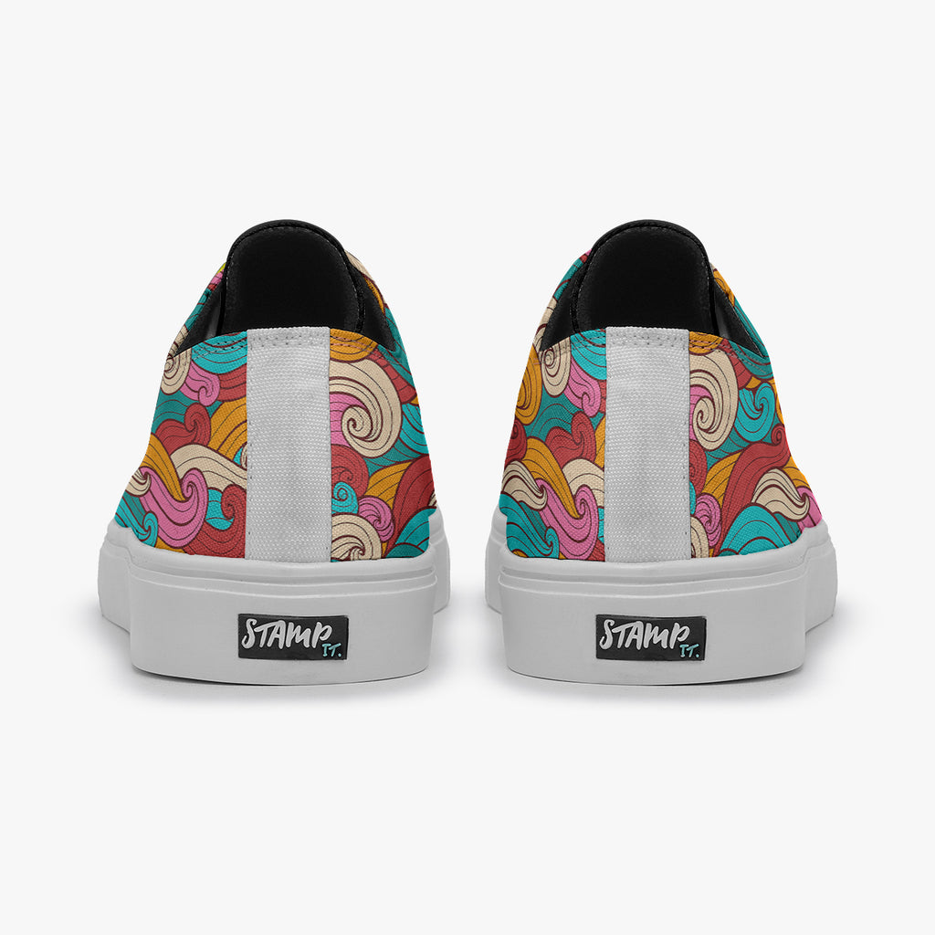 Tênis Cano Baixo Colorido Ondas Orientais Wave Abstrato