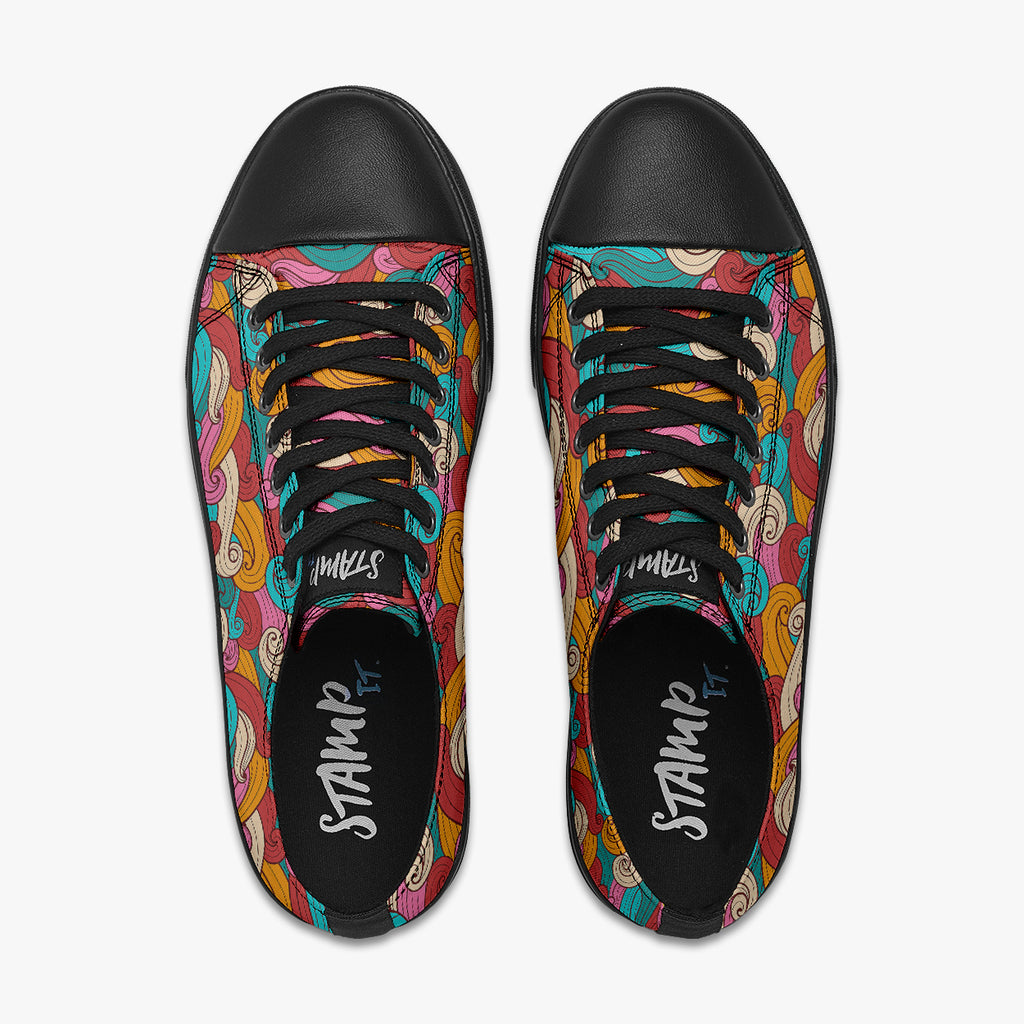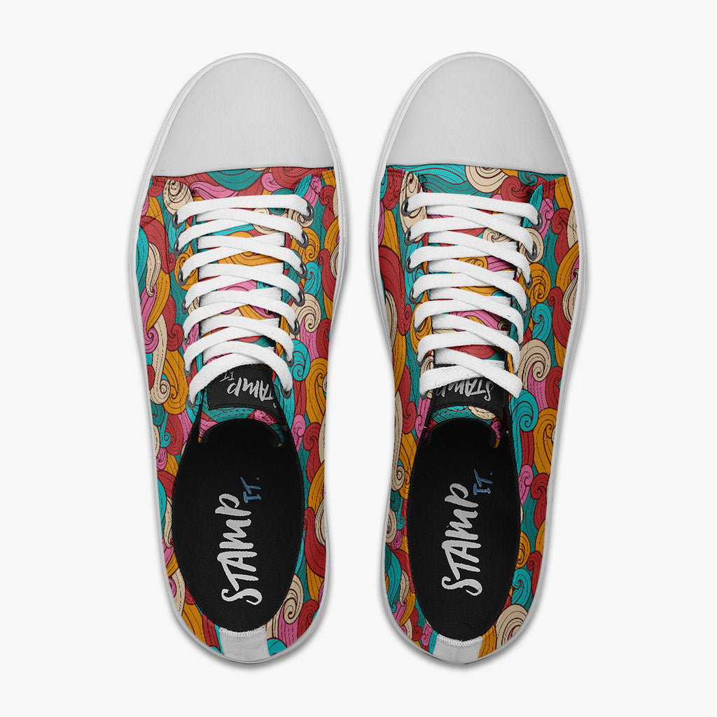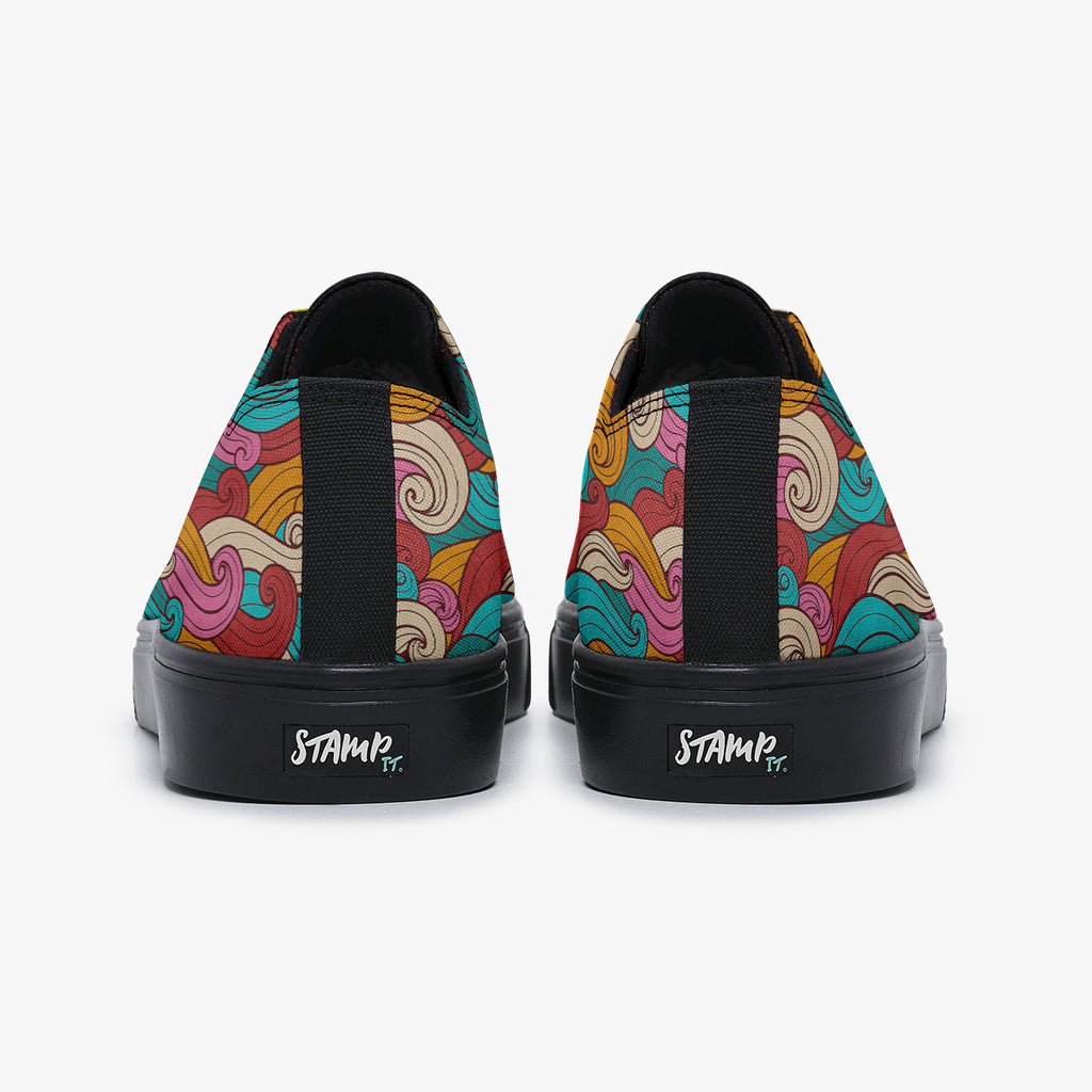 Tênis Cano Baixo Colorido Ondas Orientais Wave Abstrato