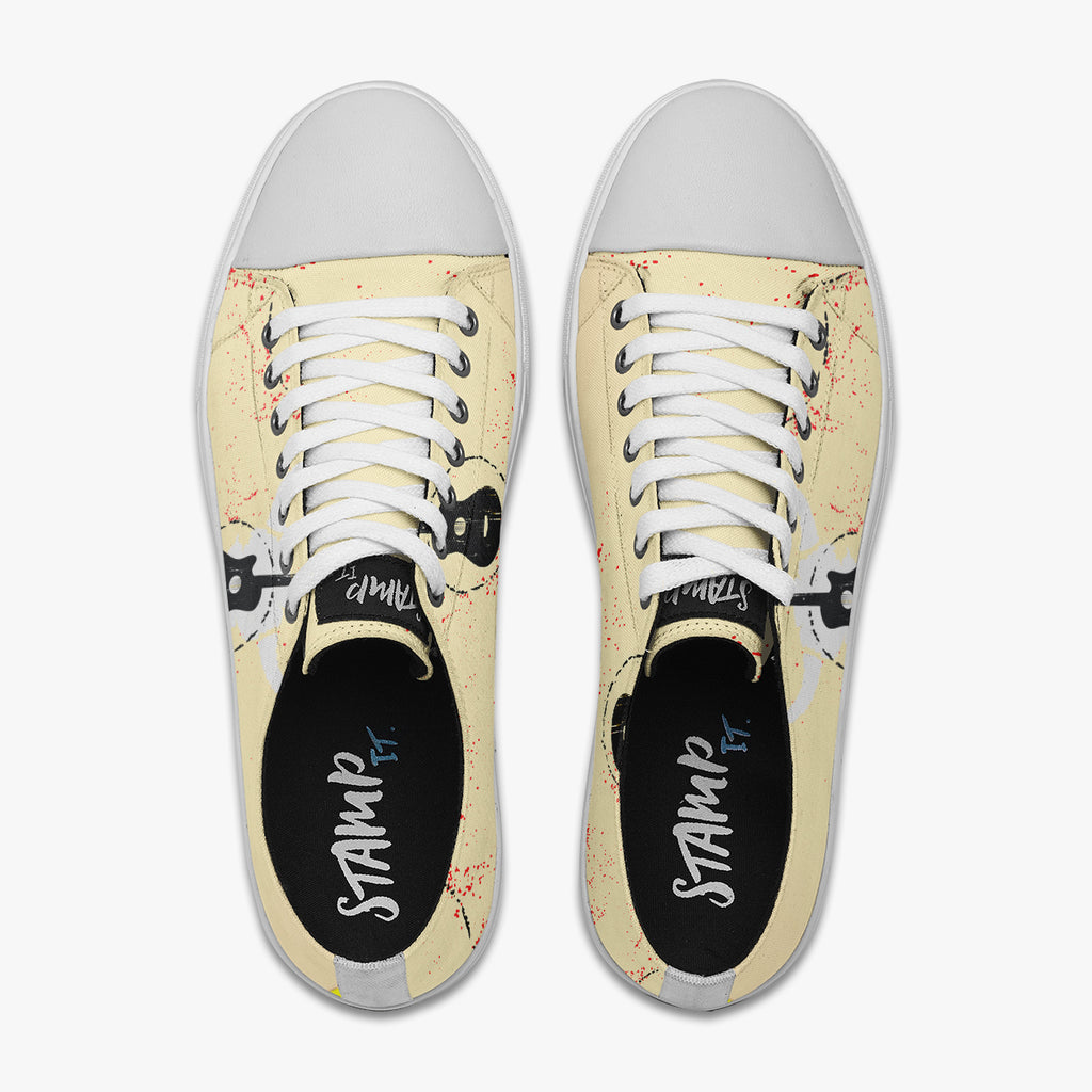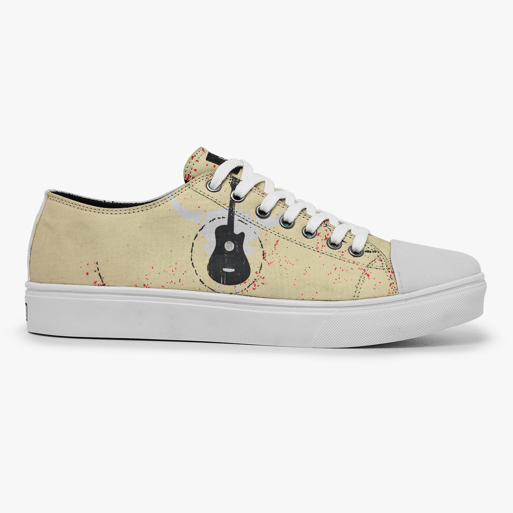 Tênis Cano Baixo creme viola sertaneja by Ricardo Batista, confeccionado em lona, com cores e estampas exclusivas.