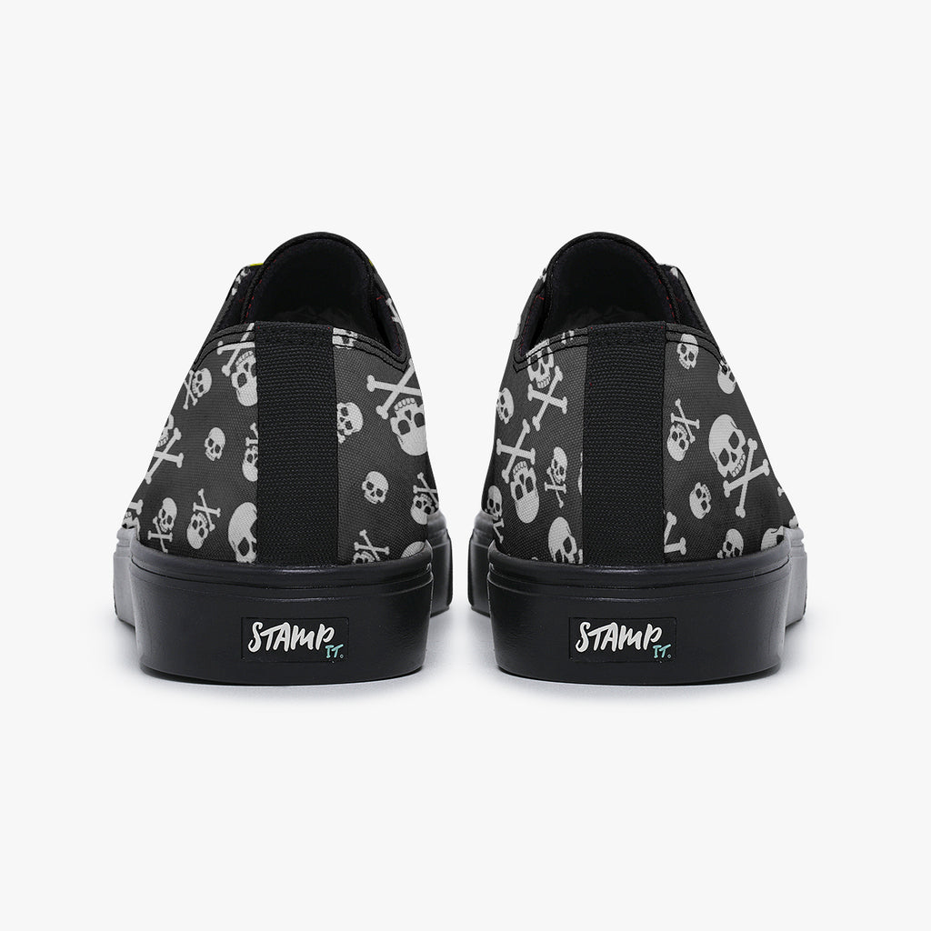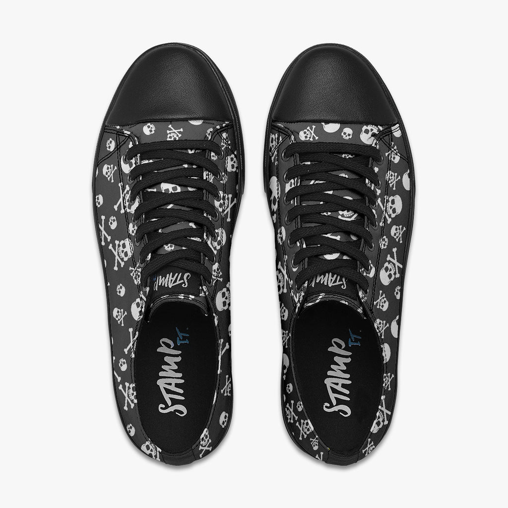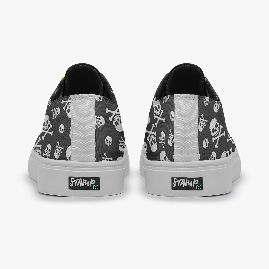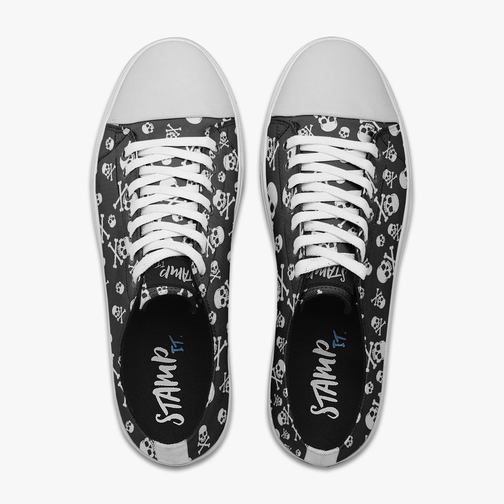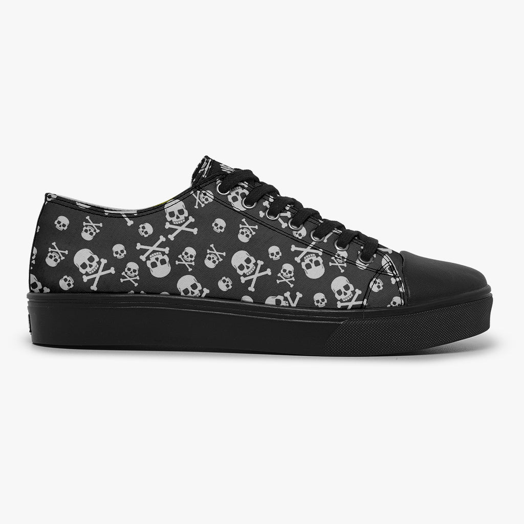 Tênis Cano Baixo Preto Caveiras e Ossos Brancos Caveiras