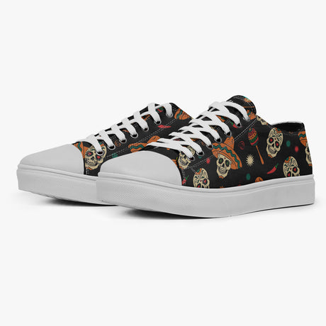 Tênis Cano Baixo Preto Preto Caveiras Mexicana Maracas Caveiras, confeccionado em lona, com cores e estampas exclusivas.