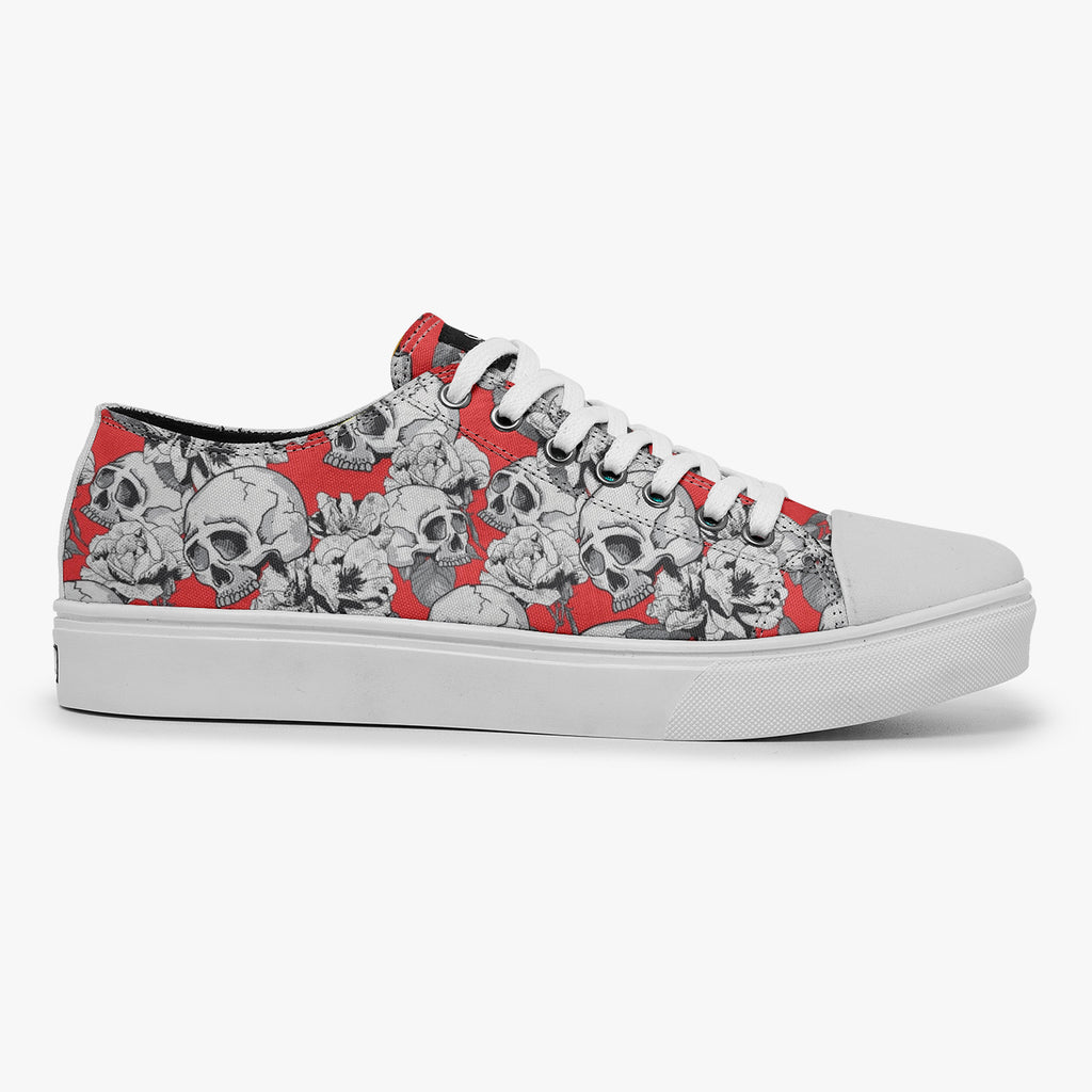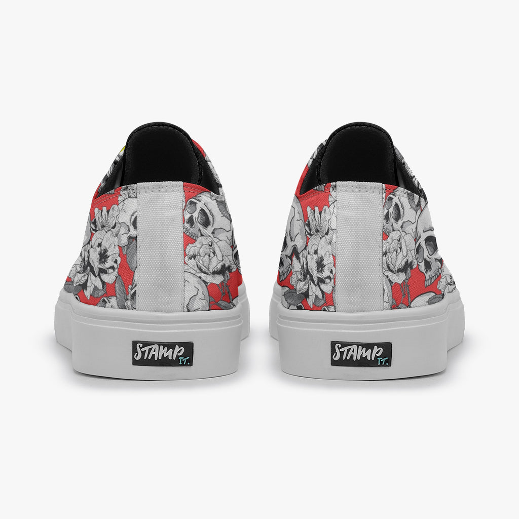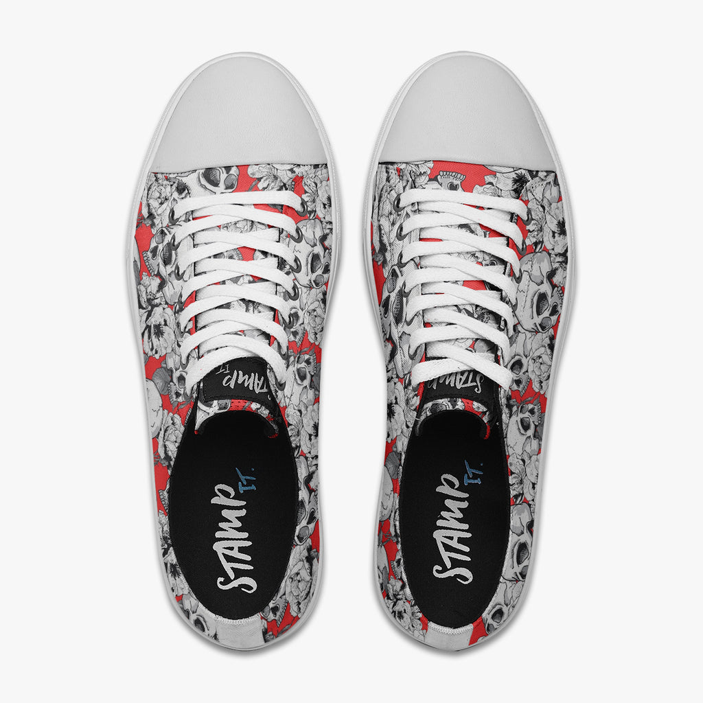Tênis Cano Baixo Vermelho Caveiras e flores Caveiras