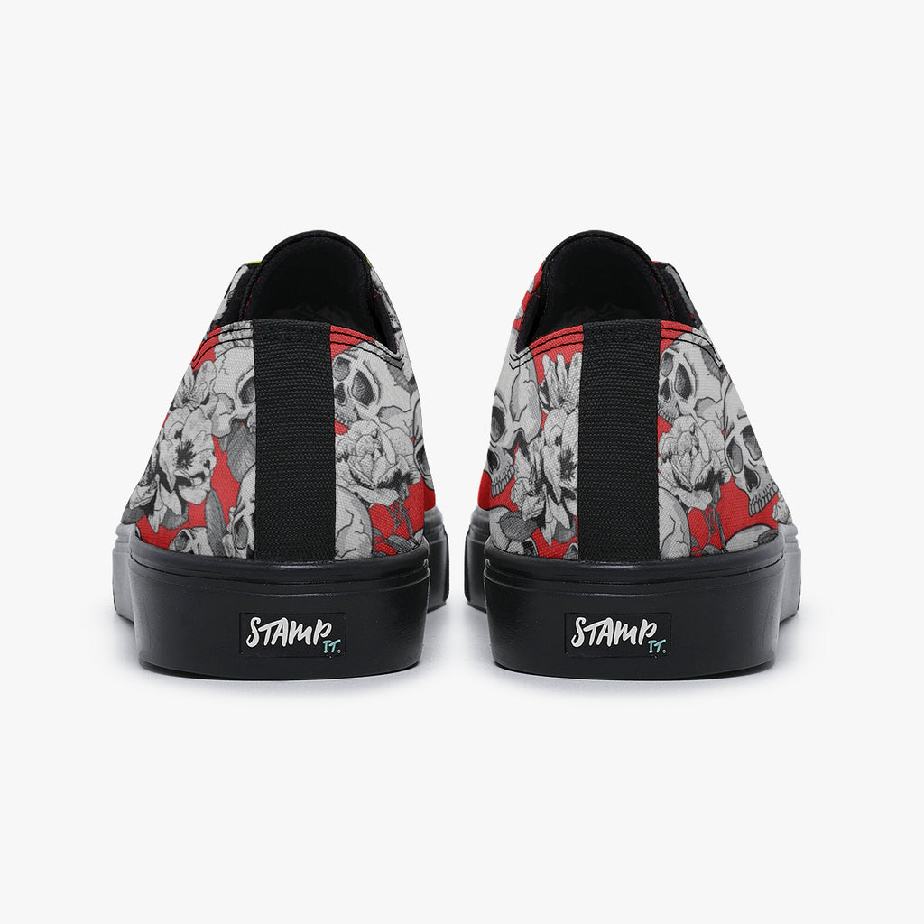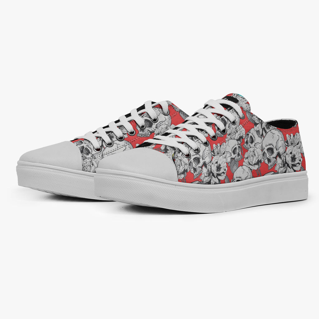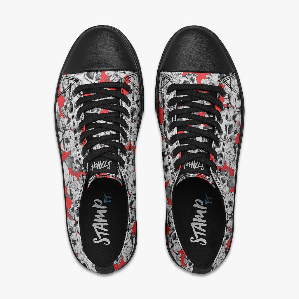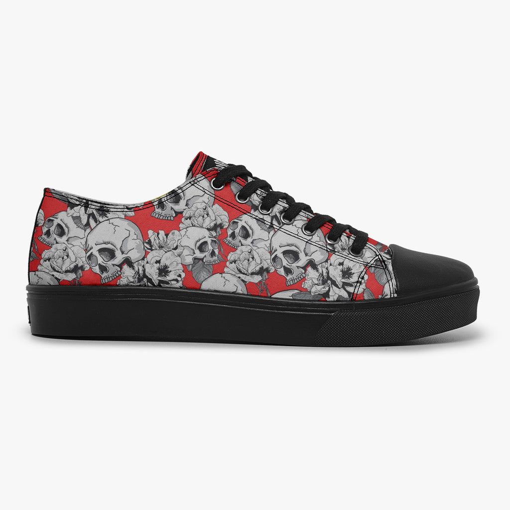 Tênis Cano Baixo Vermelho Caveiras e flores Caveiras