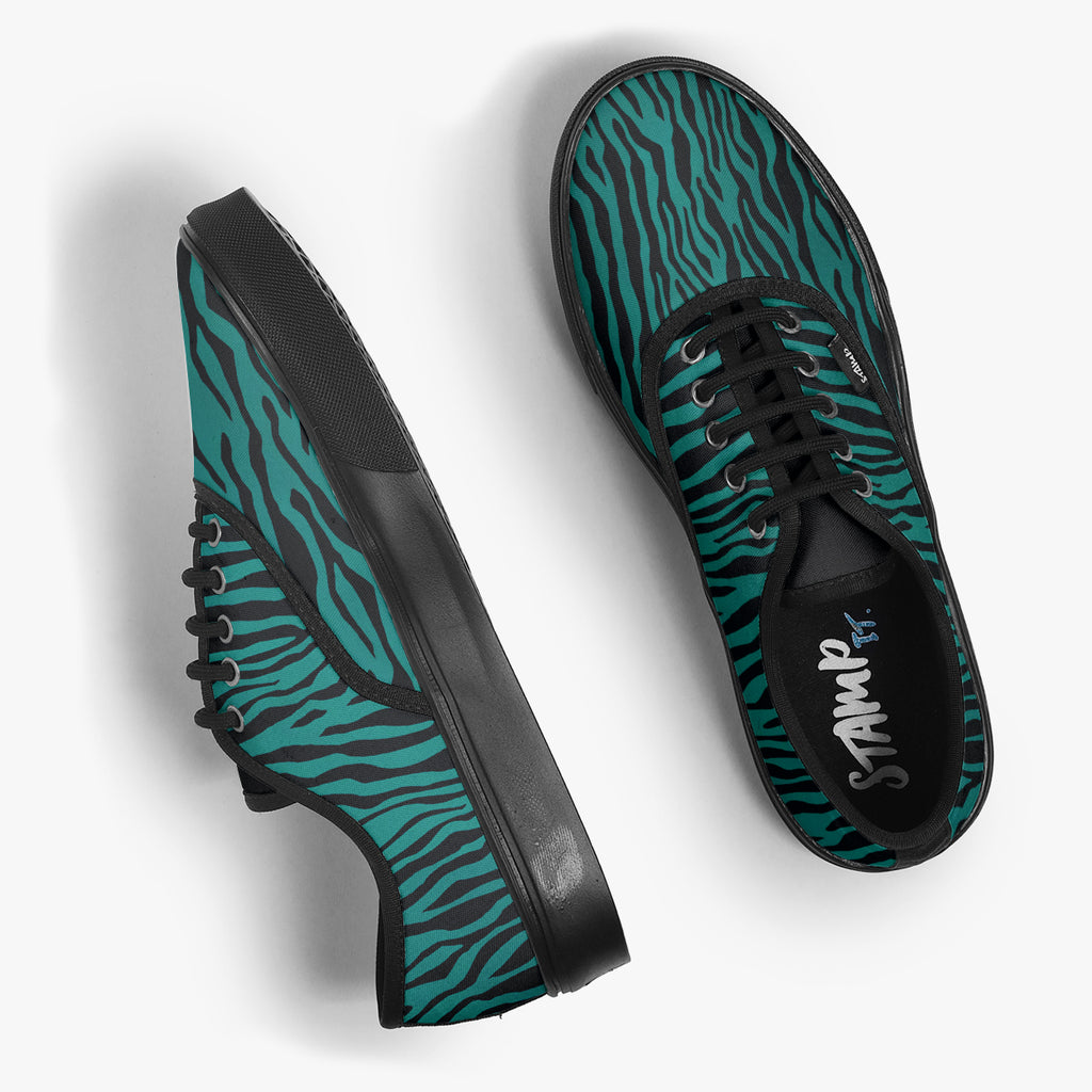 Tênis Casual Unissex Zebra Azul Com Preto Animais