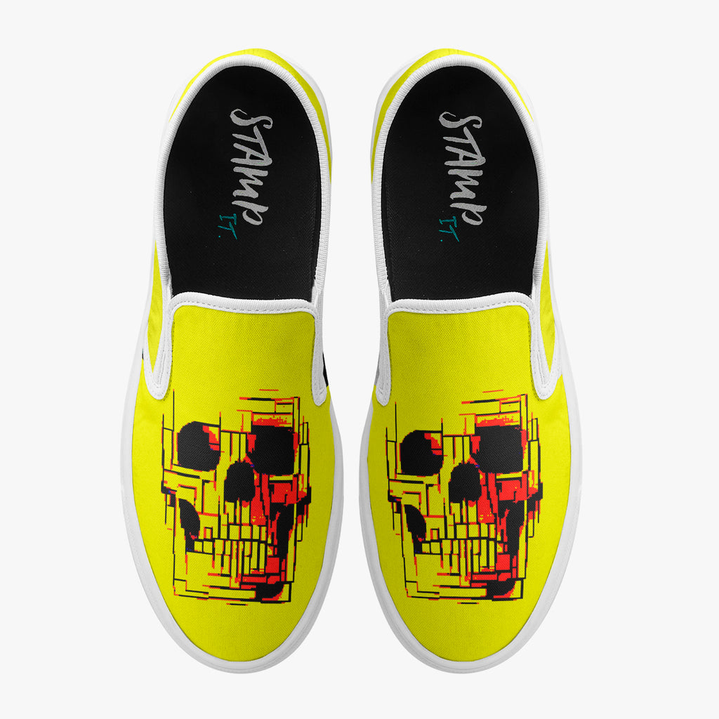 Tênis Mule Amarelo Caveira Holograma Abstrato