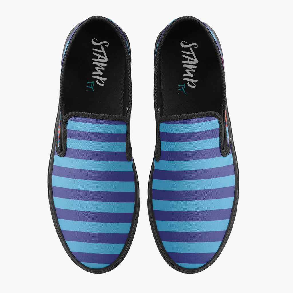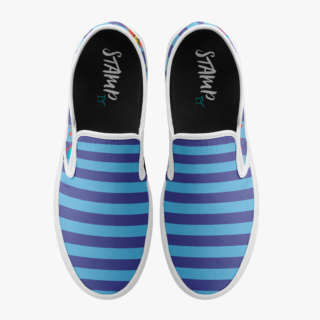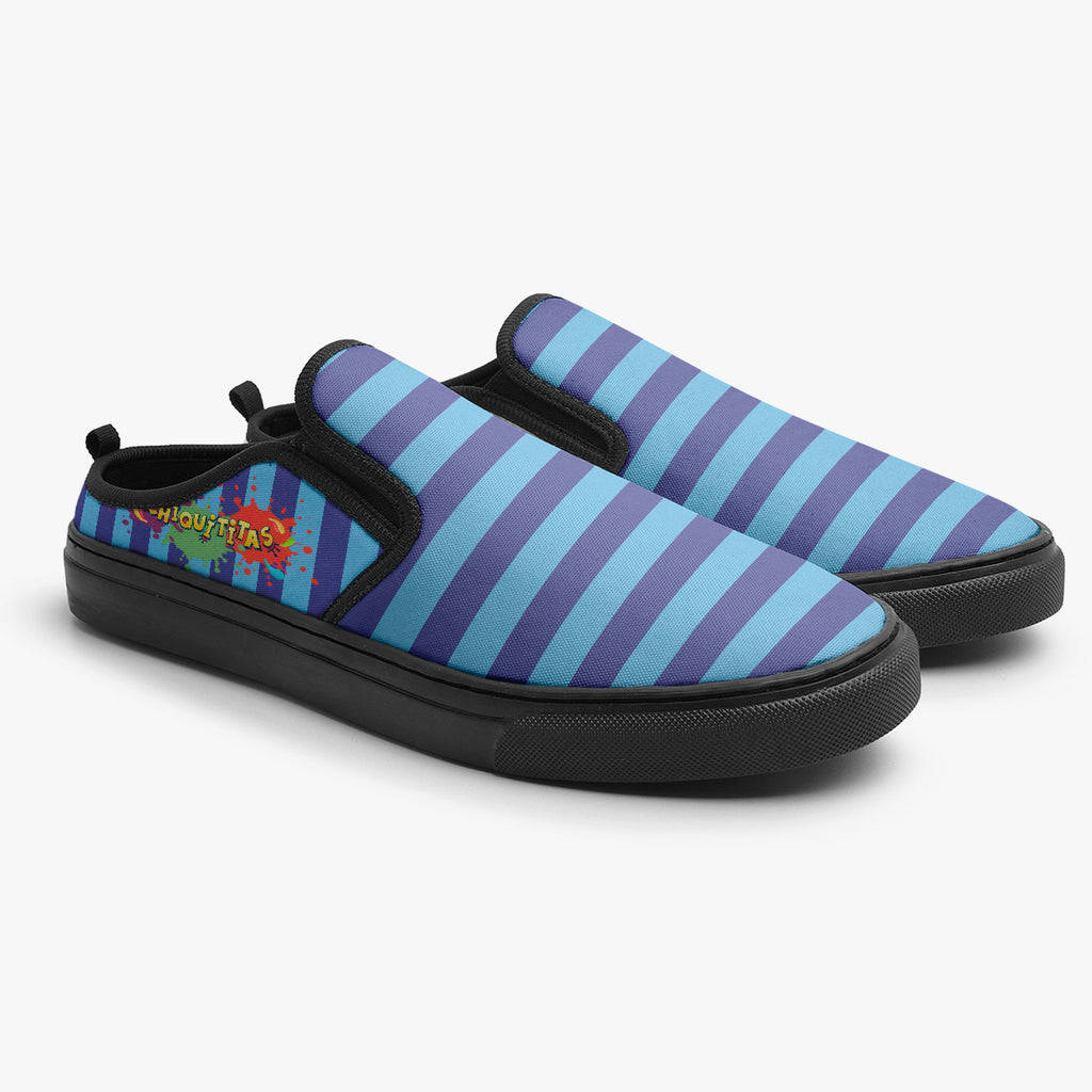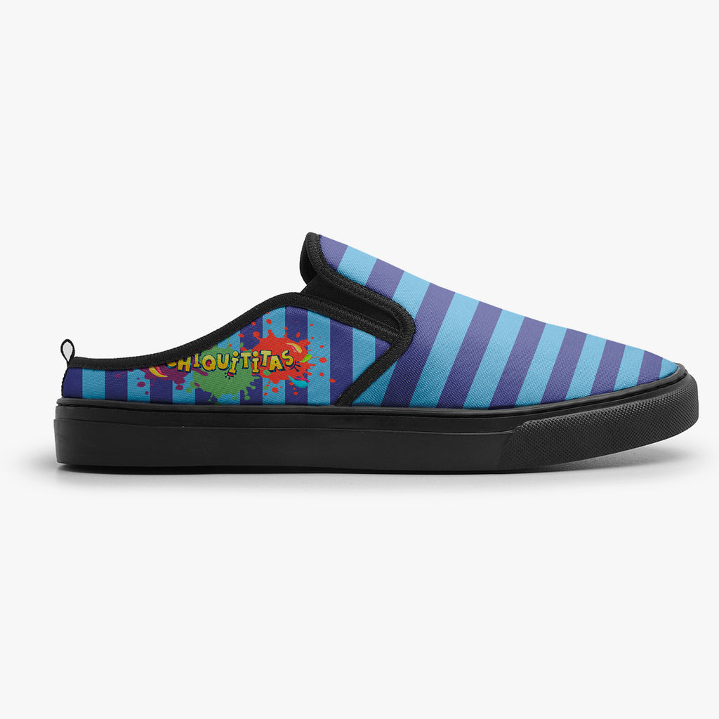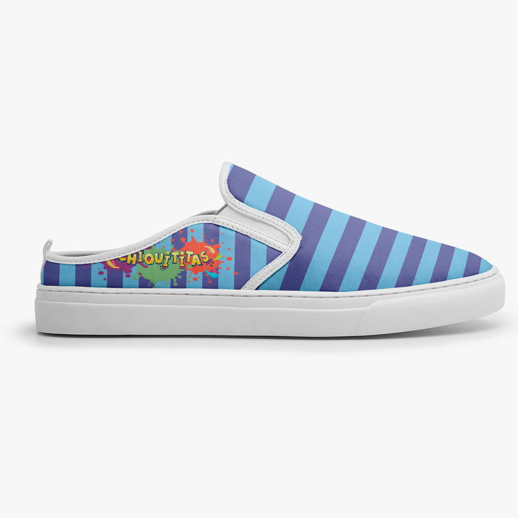 Tênis Mule Azul Listrado Chiquititas Séries e Filmes, confeccionado em lona, com cores e estampas exclusivas.