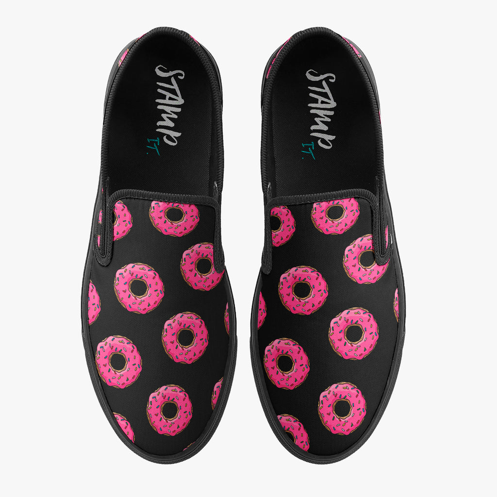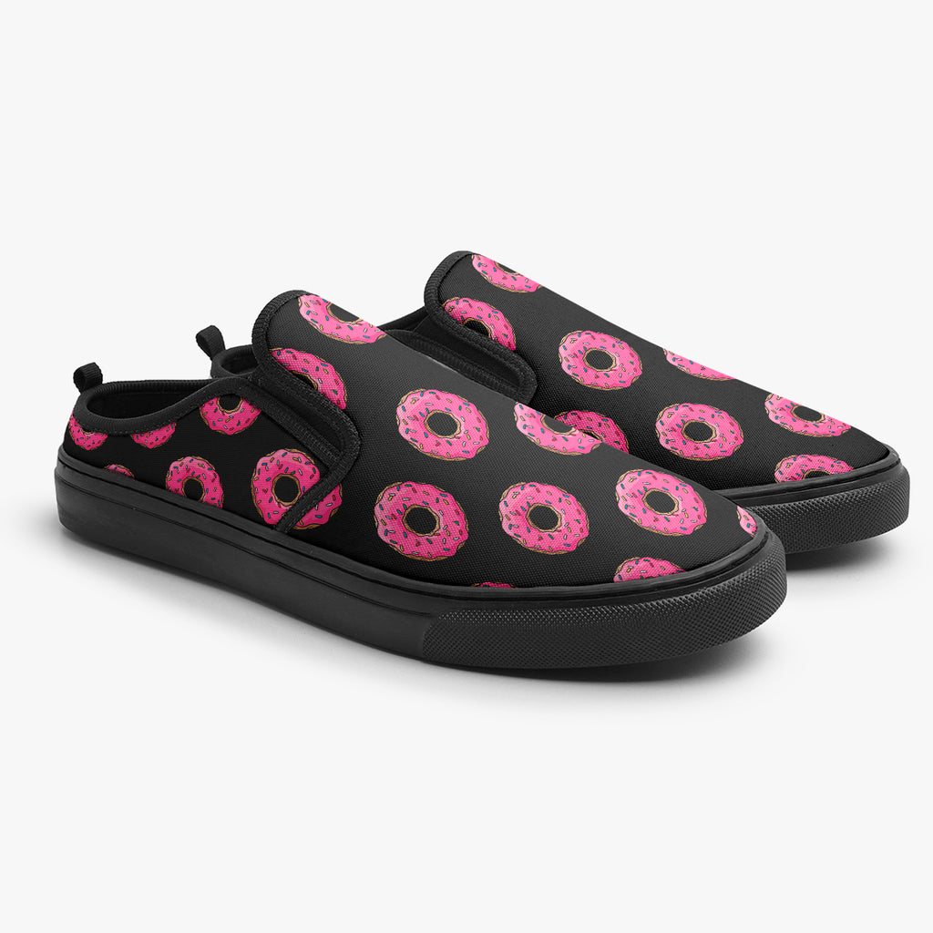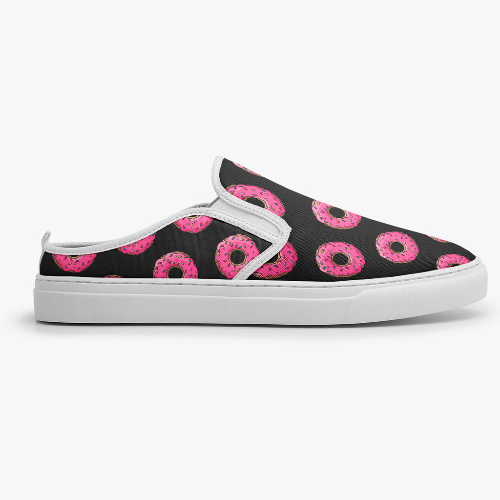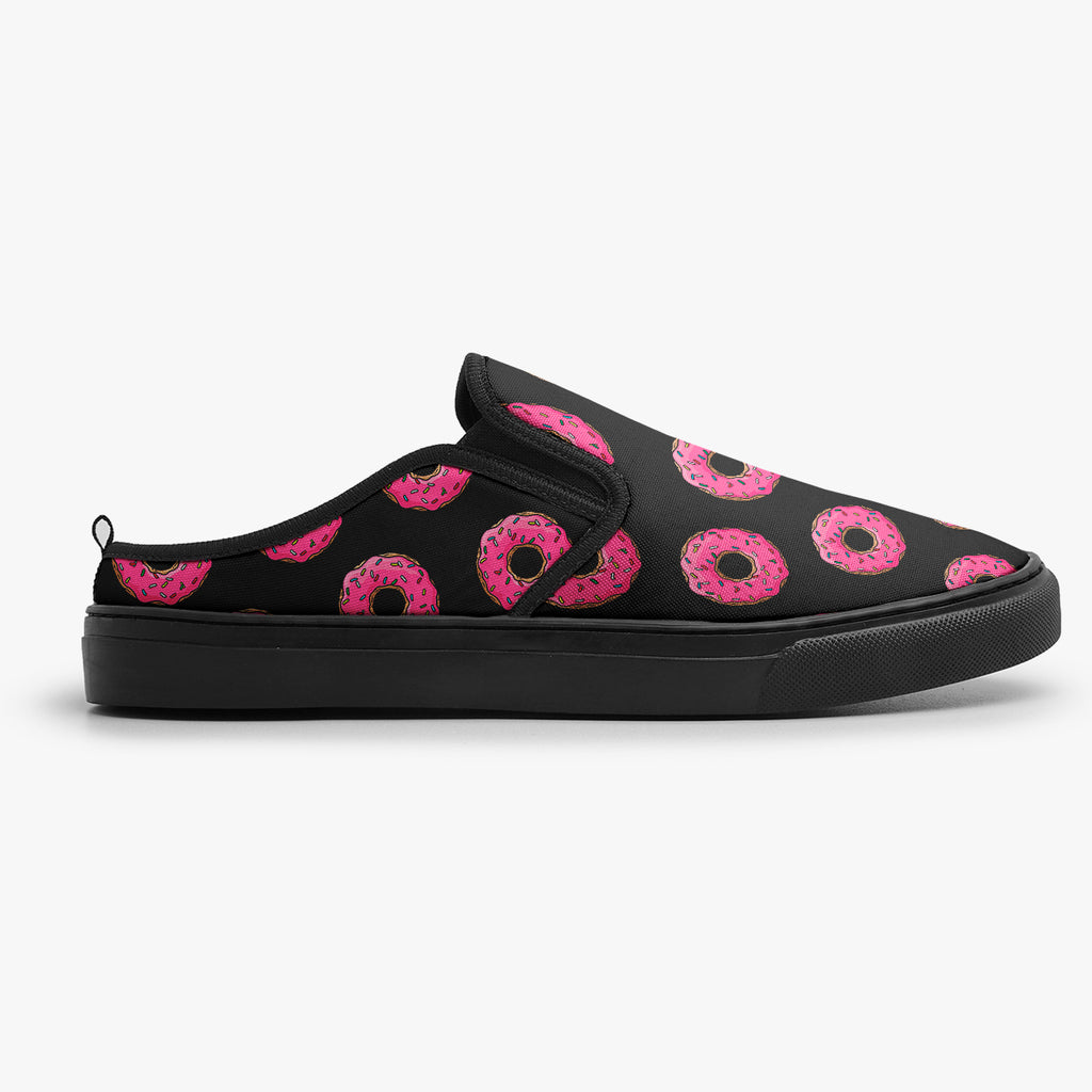 Tênis Mule Preto Desenho Donuts Rosa Abstrato
