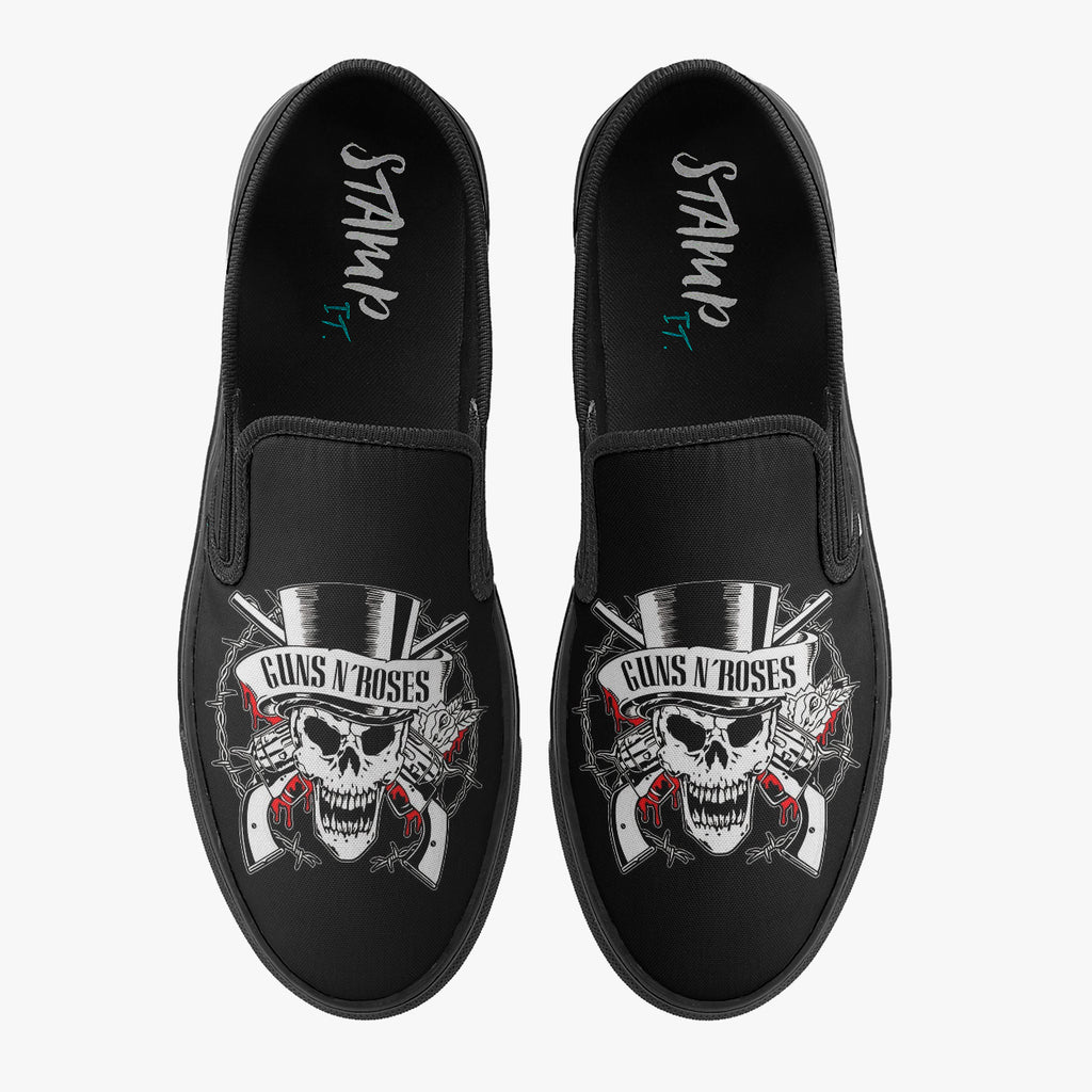 Tênis Mule Preto Guns N' Roses Caveira e Arma Bandas de Rock