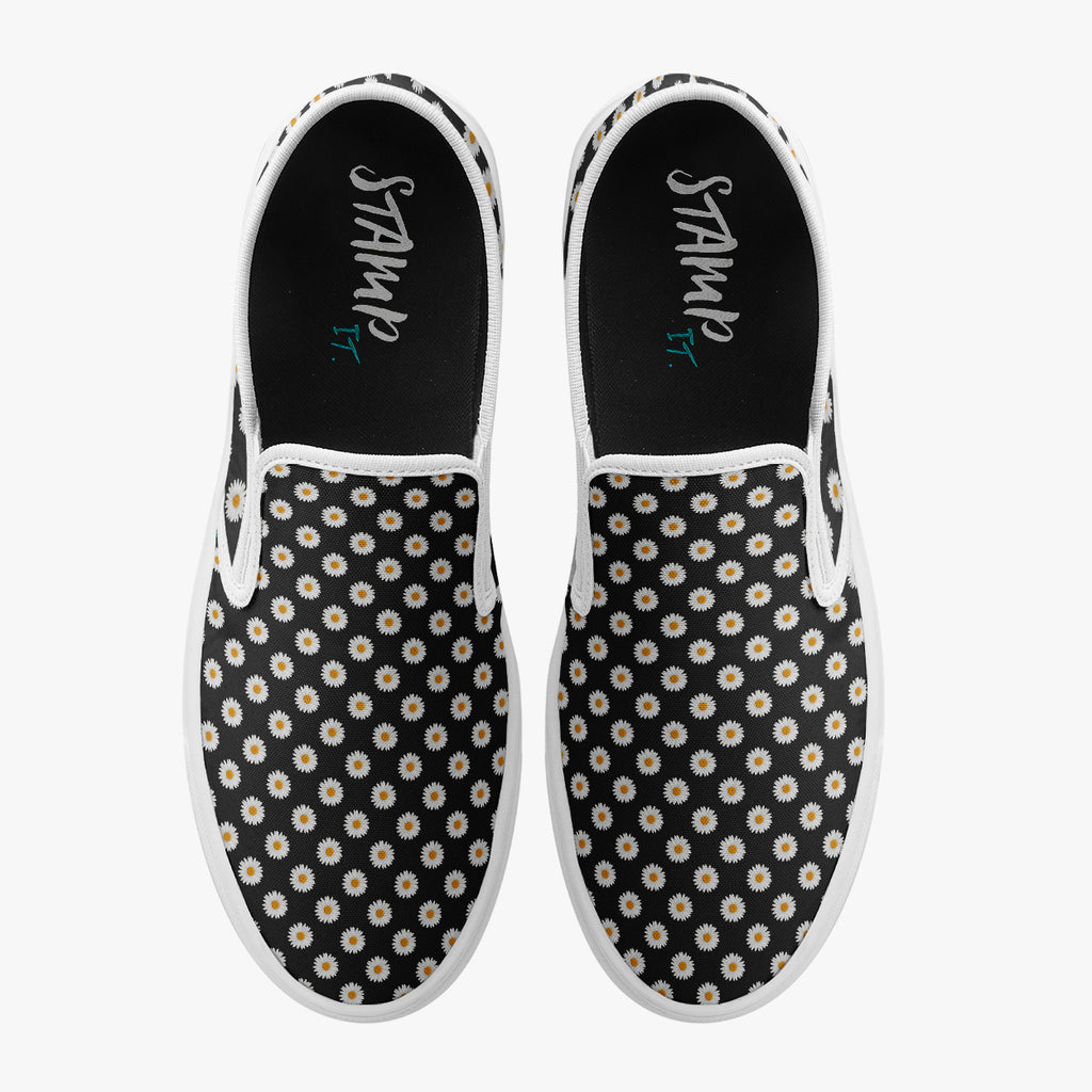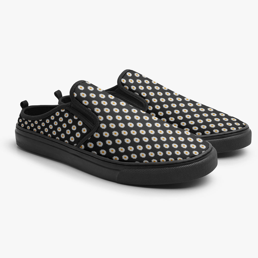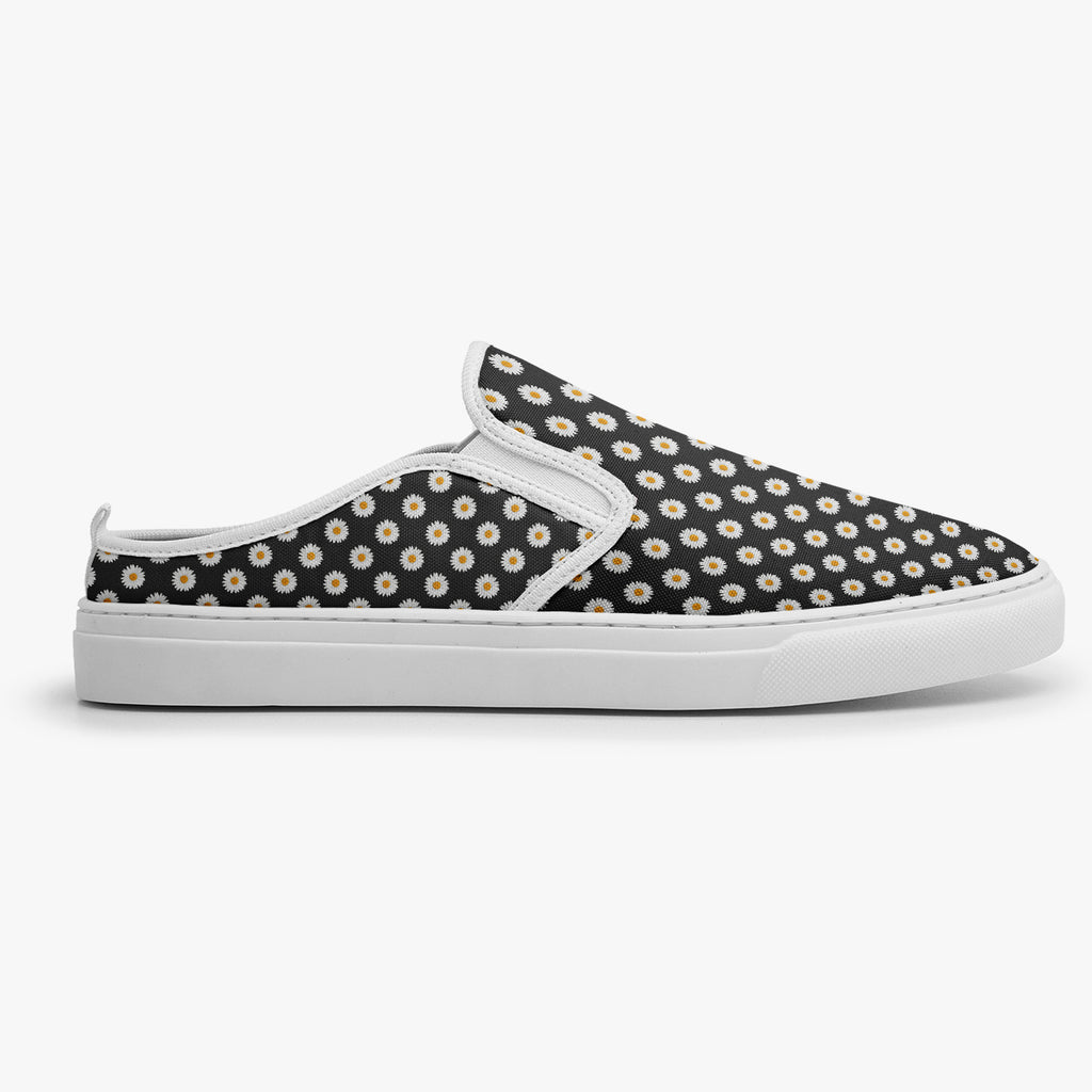 Tênis Mule Preto Mini Margaridas Flores e Folhas