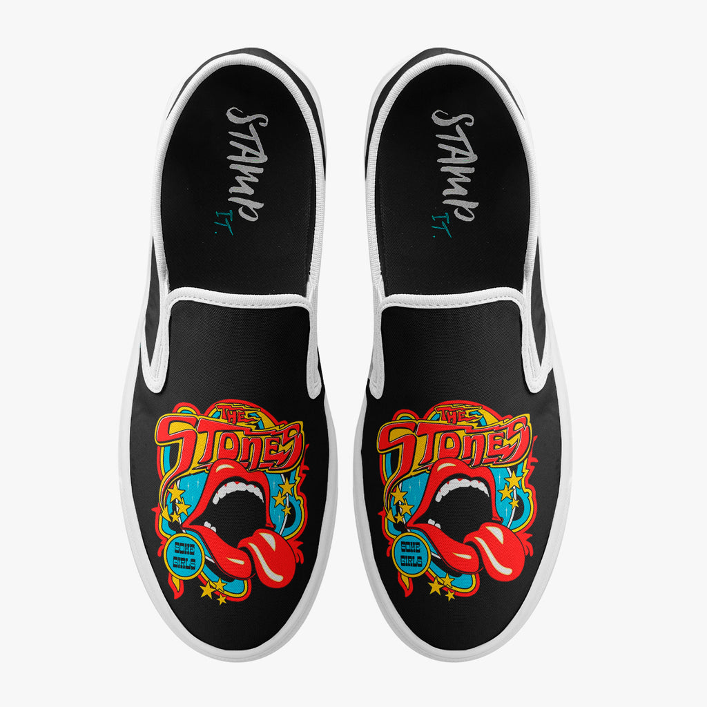 Tênis Mule Preto The Rolling Stones The Stones Bandas de Rock, confeccionado em lona, com cores e estampas exclusivas.
