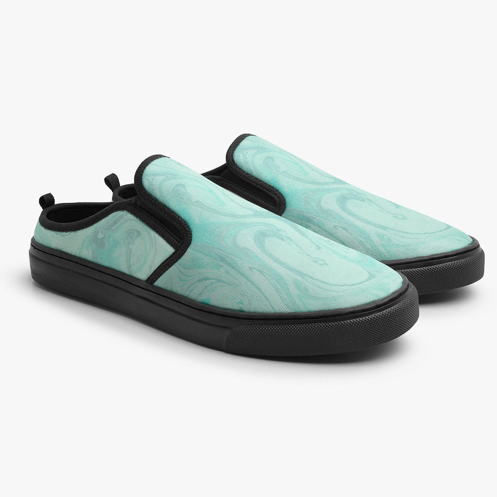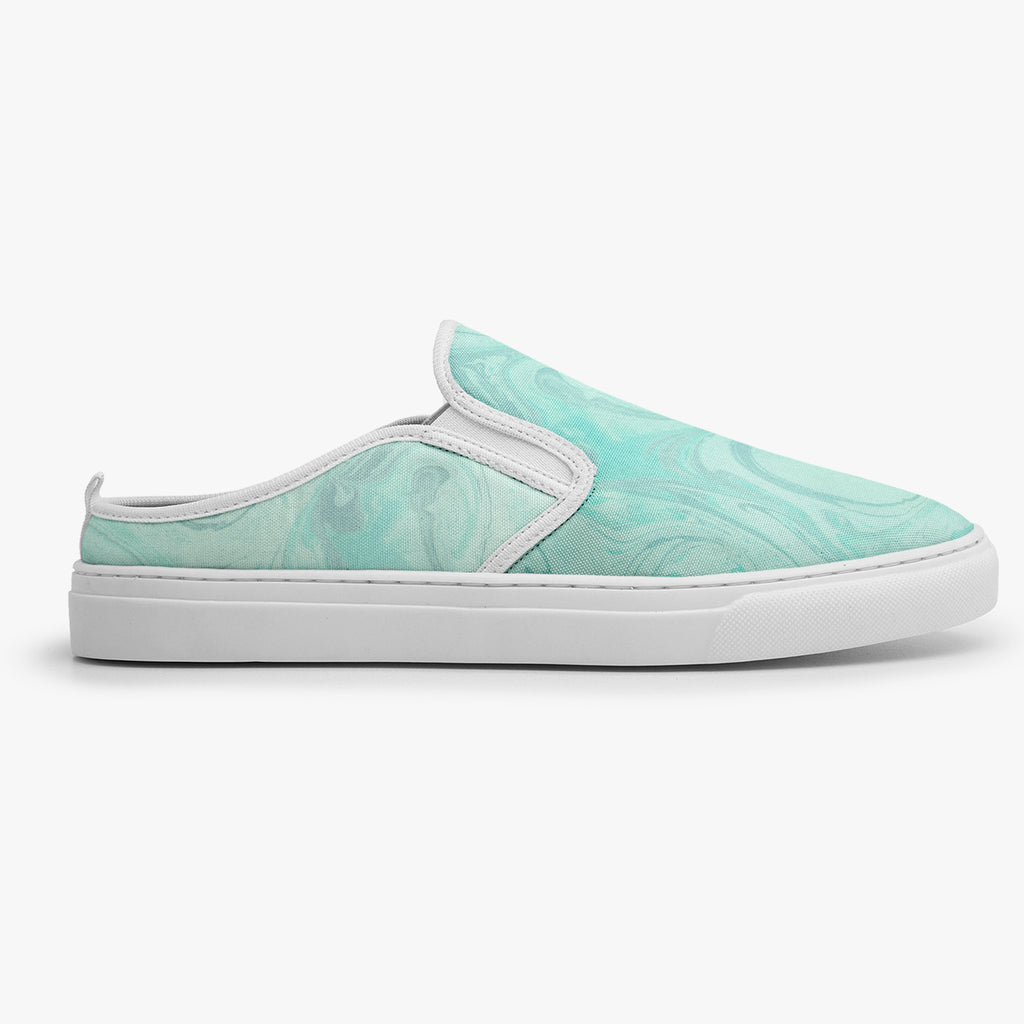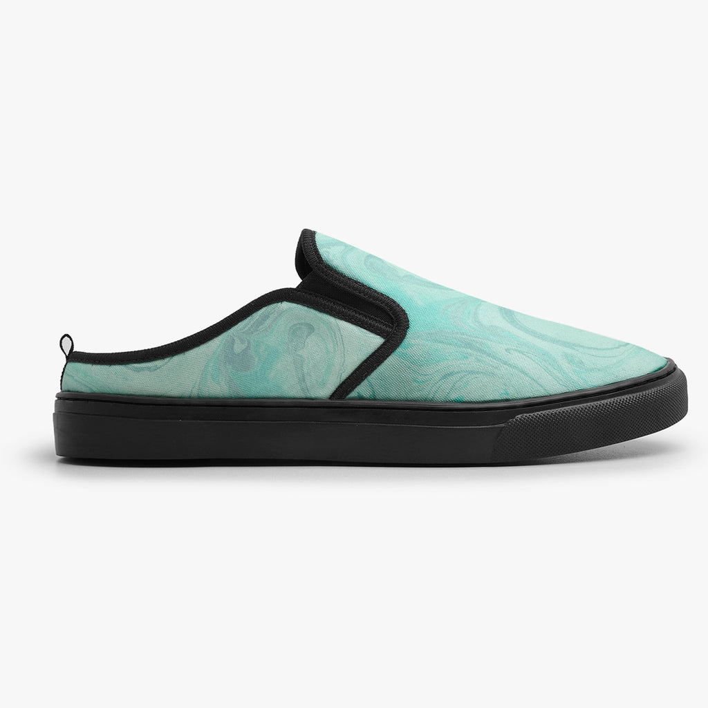 Tênis Mule Verde Textura Aquarela Abstrato, confeccionado em lona, com cores e estampas exclusivas.