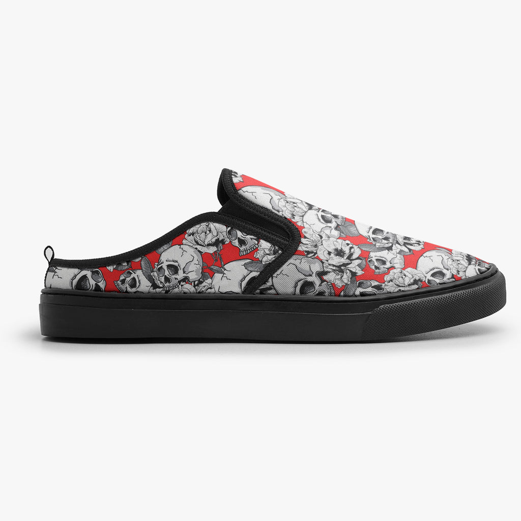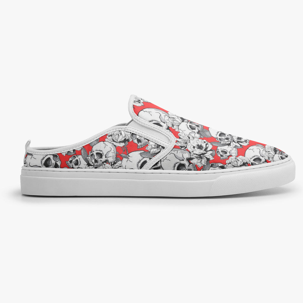 Tênis Mule Vermelho Caveiras e flores Caveiras