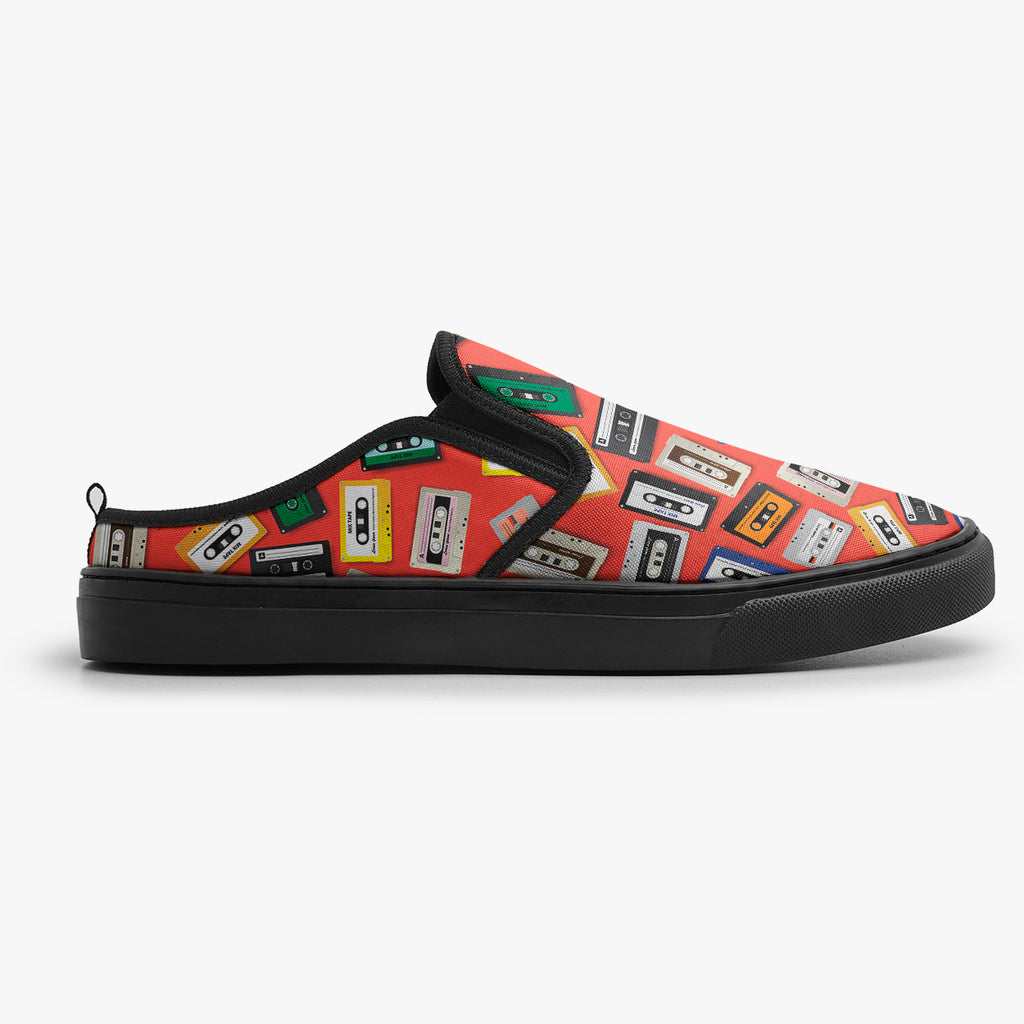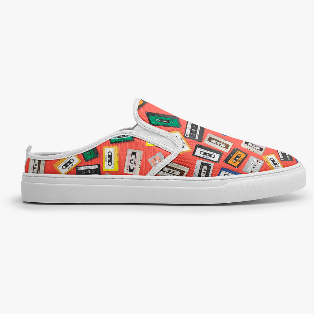Tênis Mule Vermelho Fita K7 Coloridas Abstrato