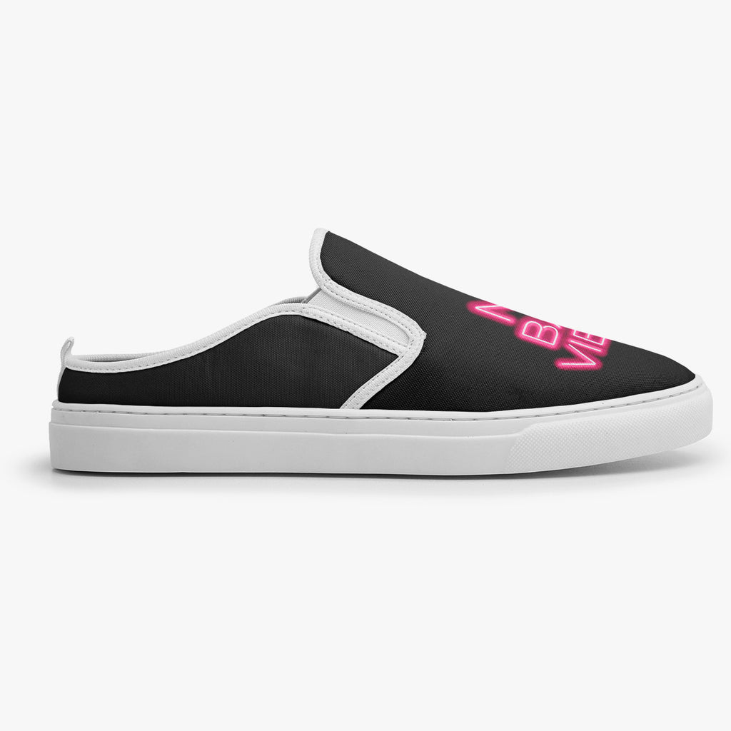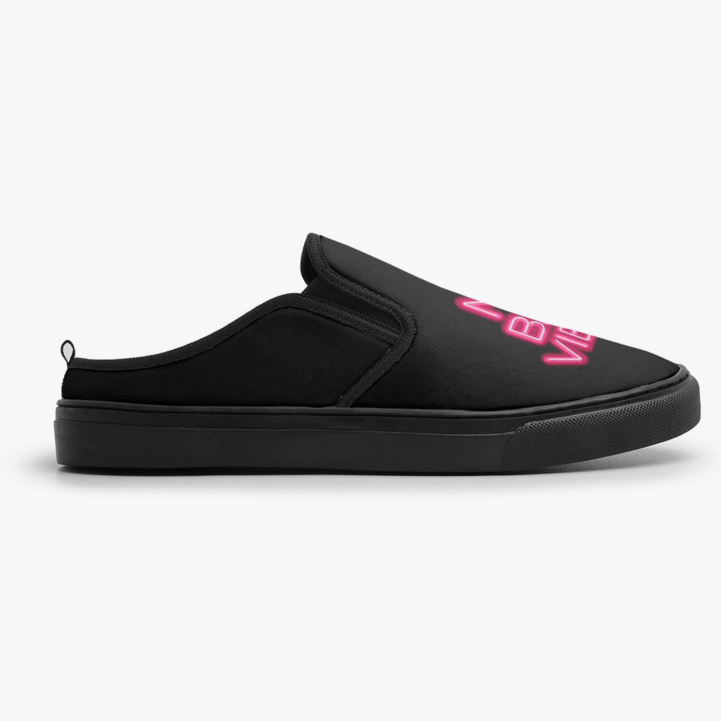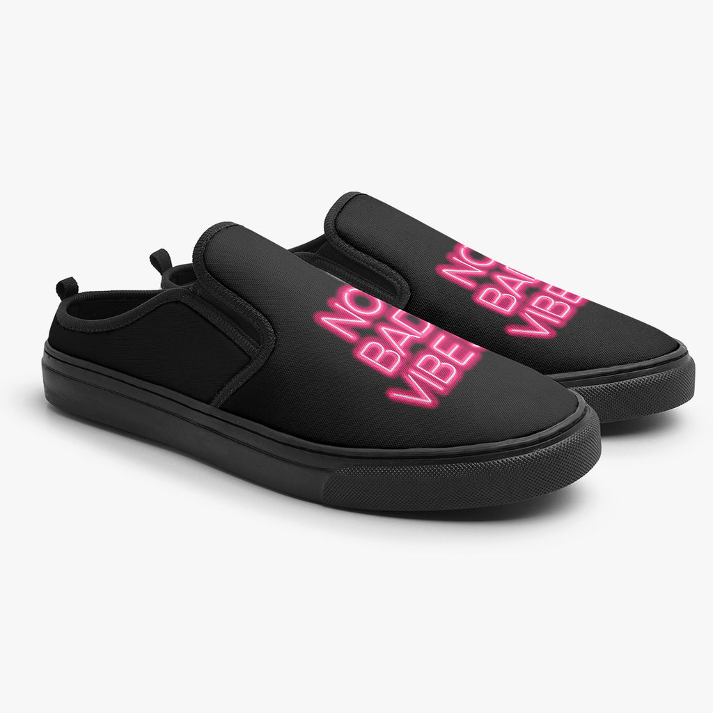 Calçado Mule Preto No Bad Vibes Tumblr Neon Cultura e Arte, confeccionado em lona, com cores e estampas exclusivas.