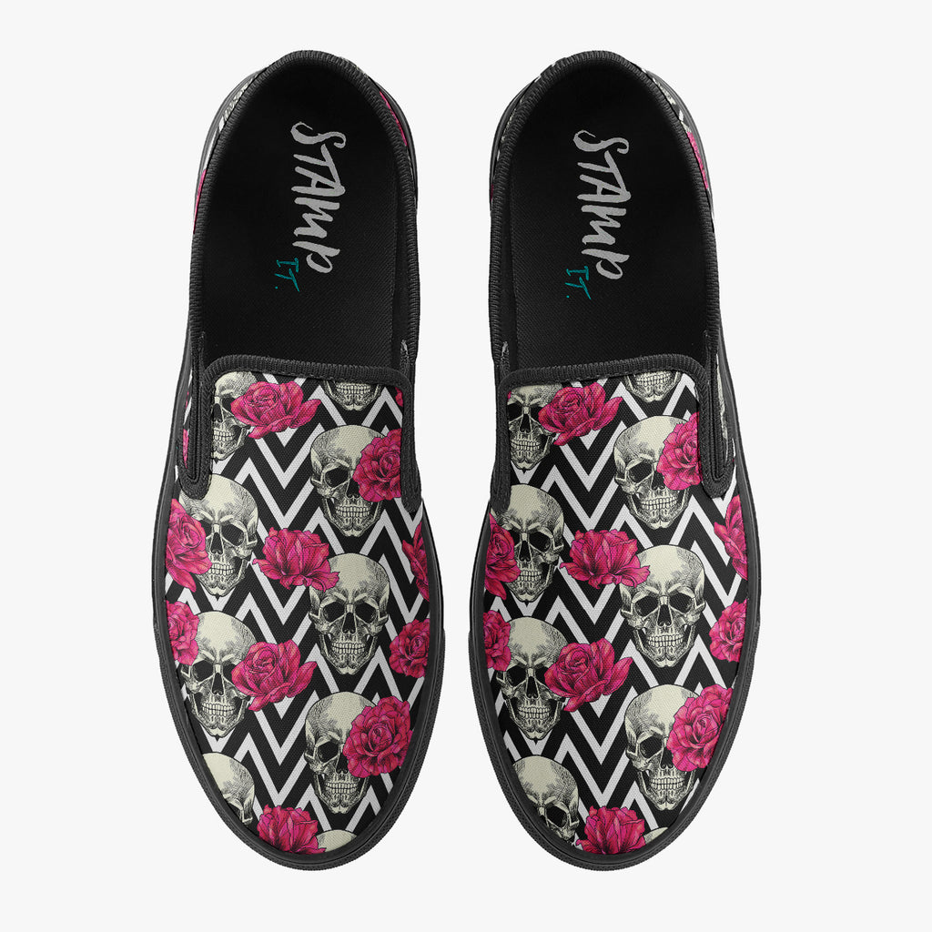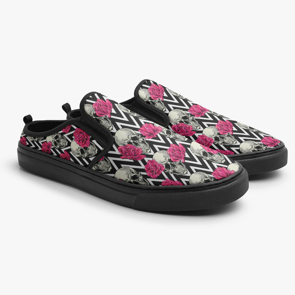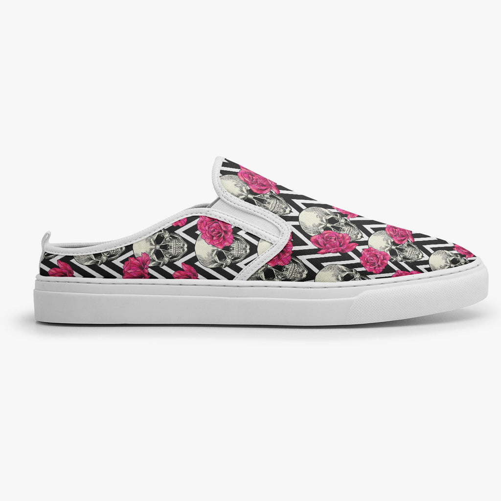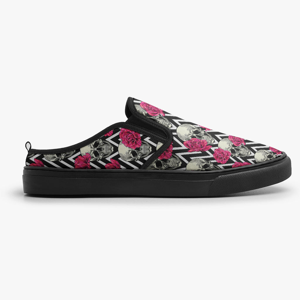 Tênis Sapatênis Mule Preto Rosa Caveiras