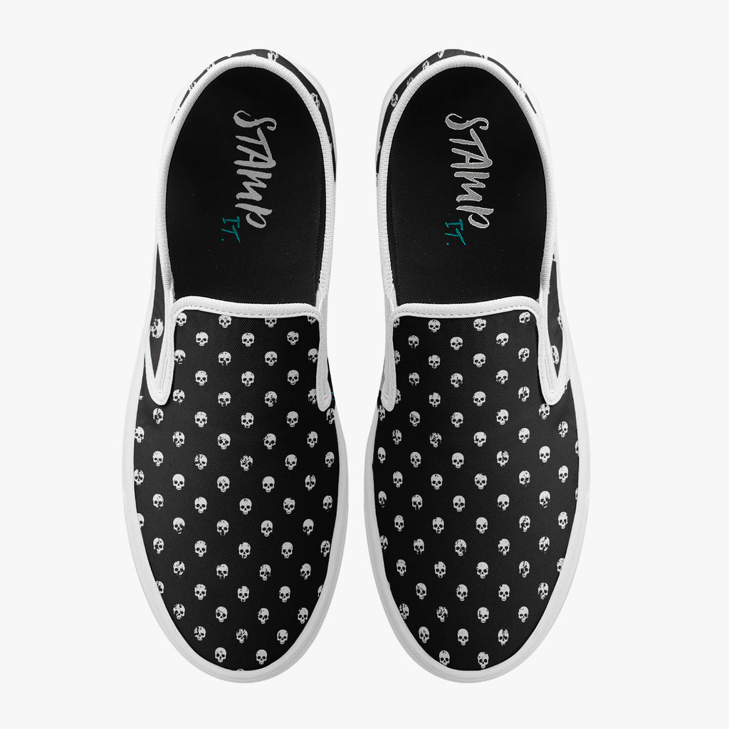 Tênis Sapatênis Slip On Preto Mini Caveiras