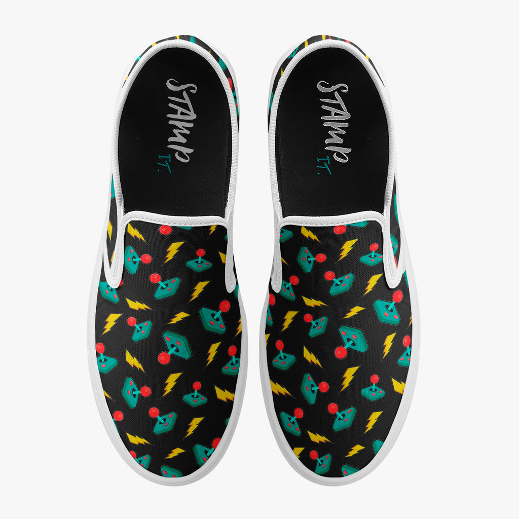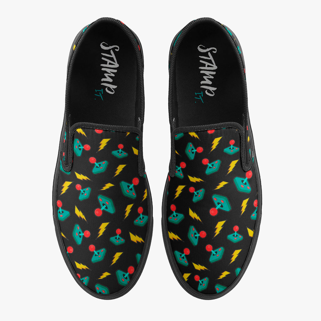 Tênis Sapatênis Slip On Preto Retro Raio Game