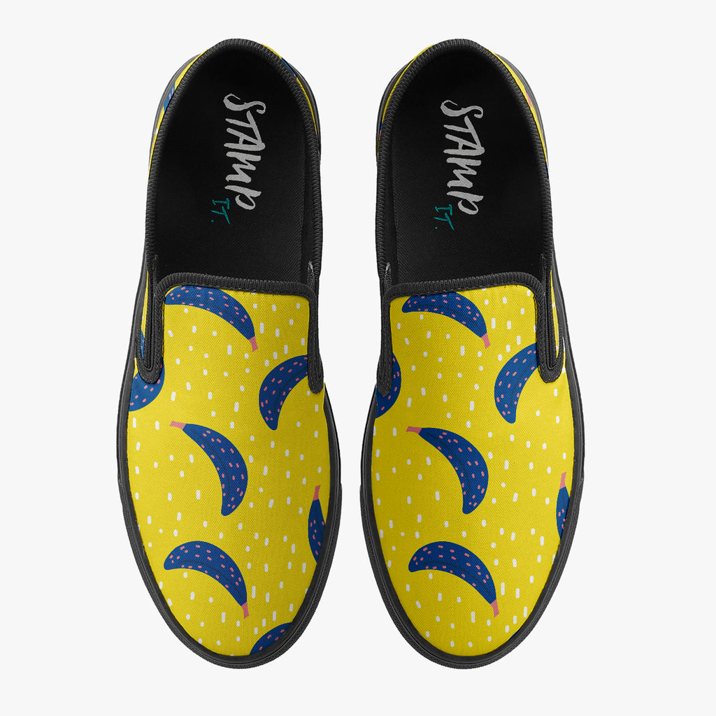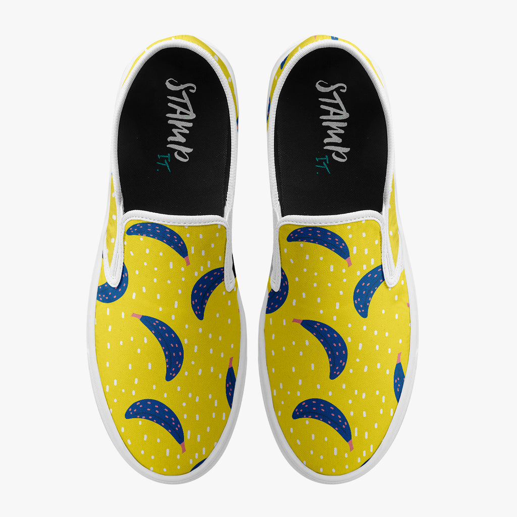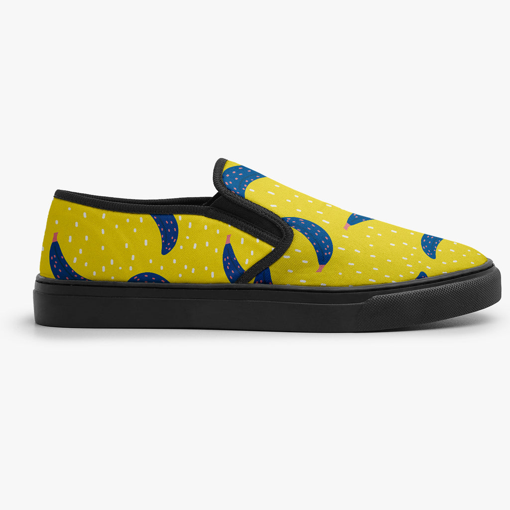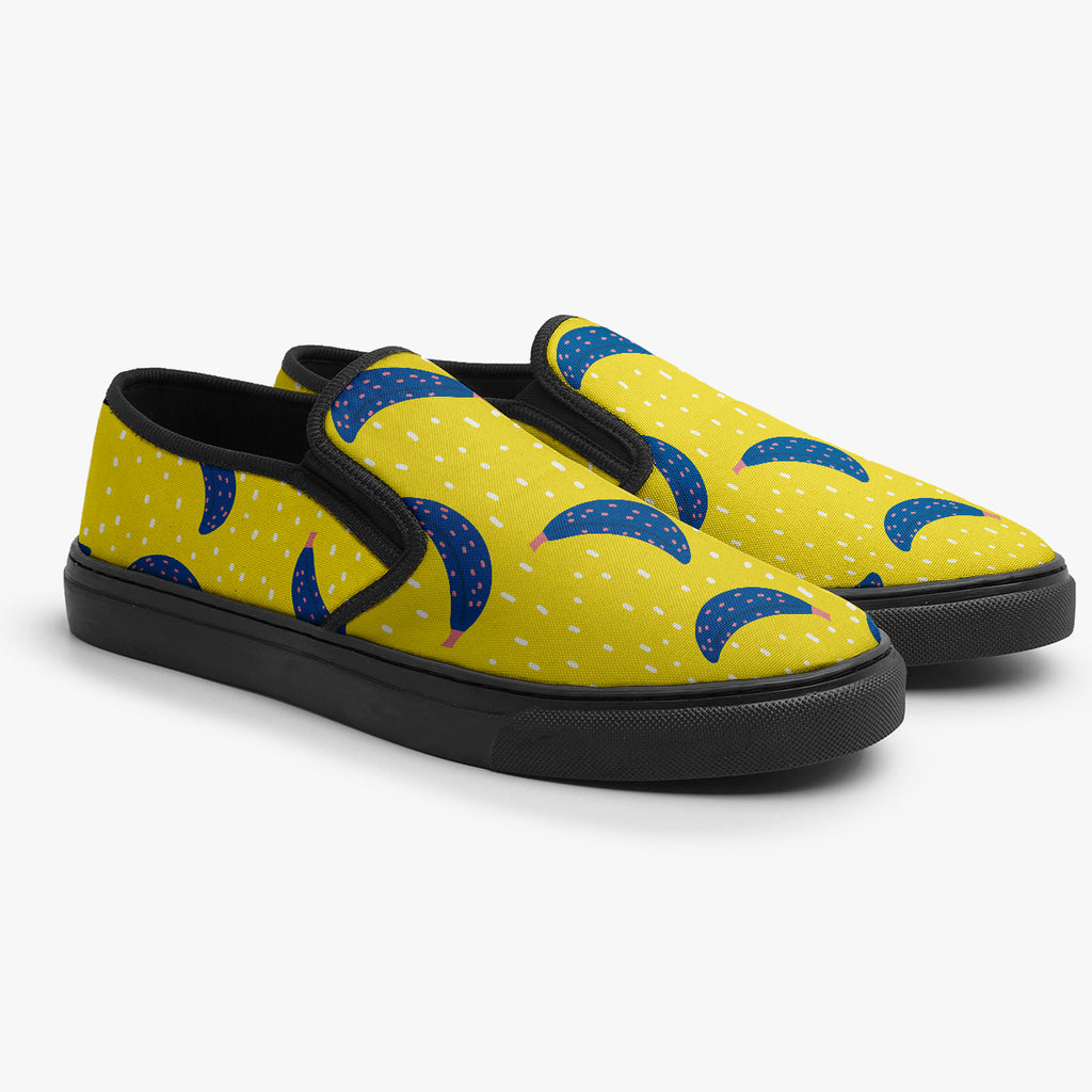 Tênis Slip On Amarelo Bananas Azuis Abstrato