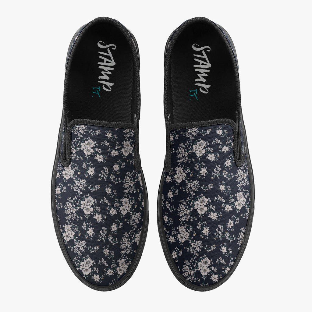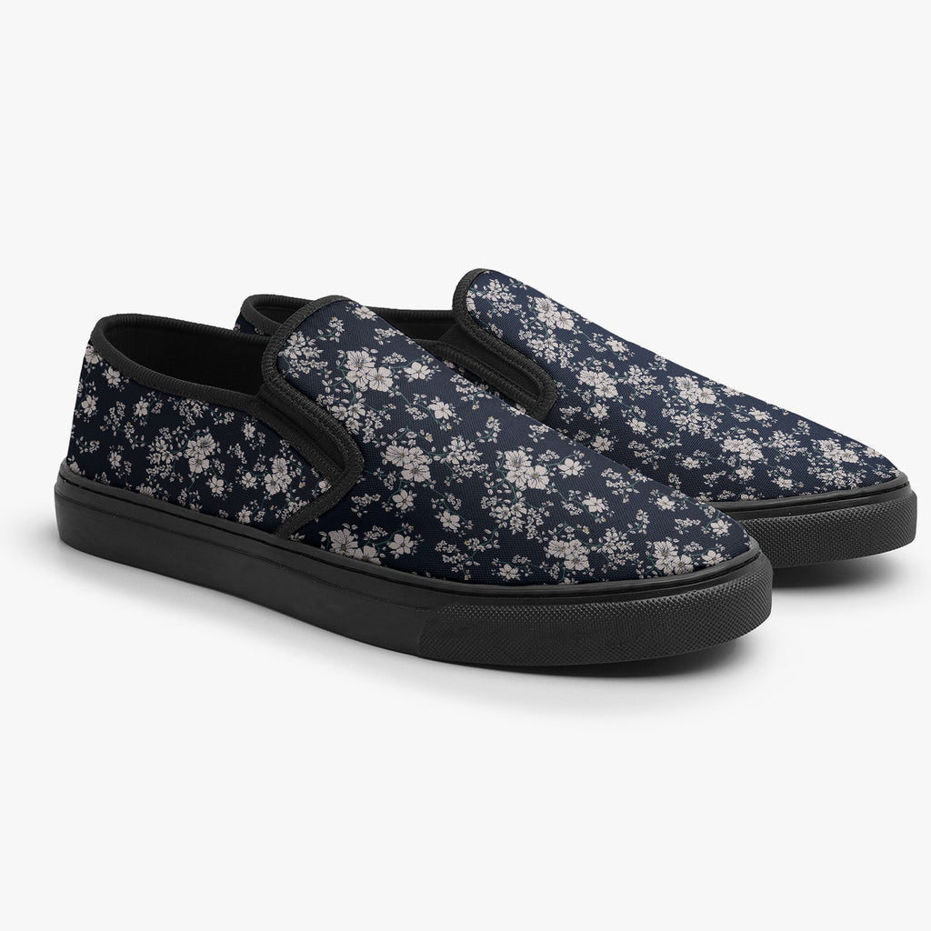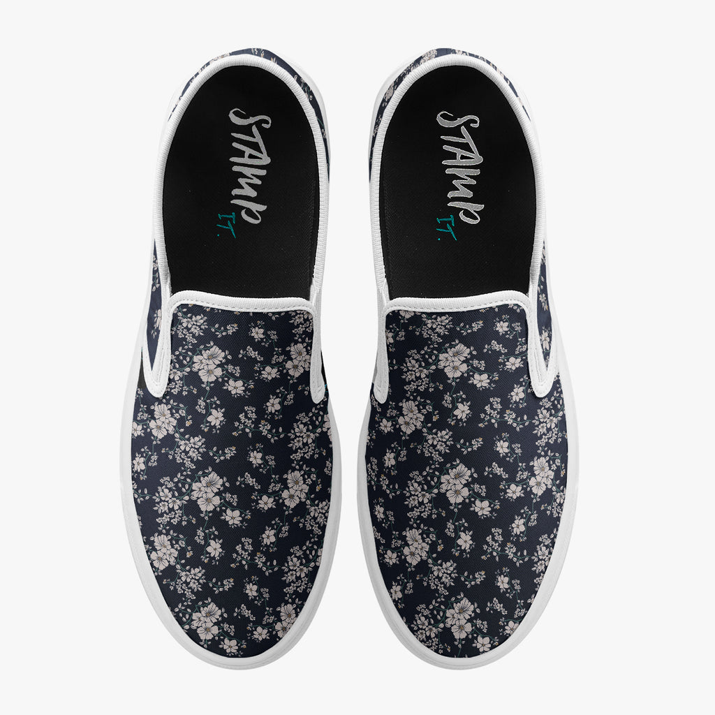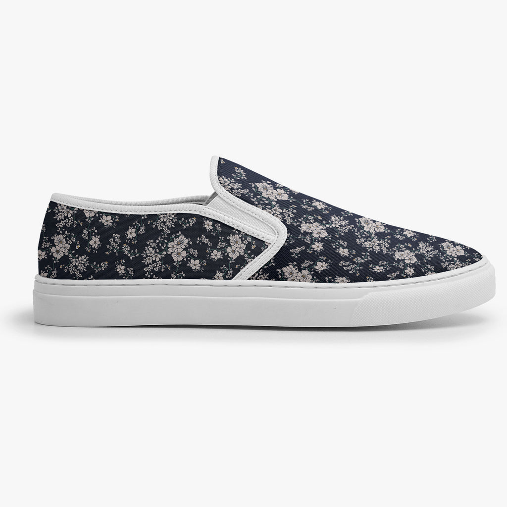 Tênis Slip On Azul Floral Branco Nature Flores