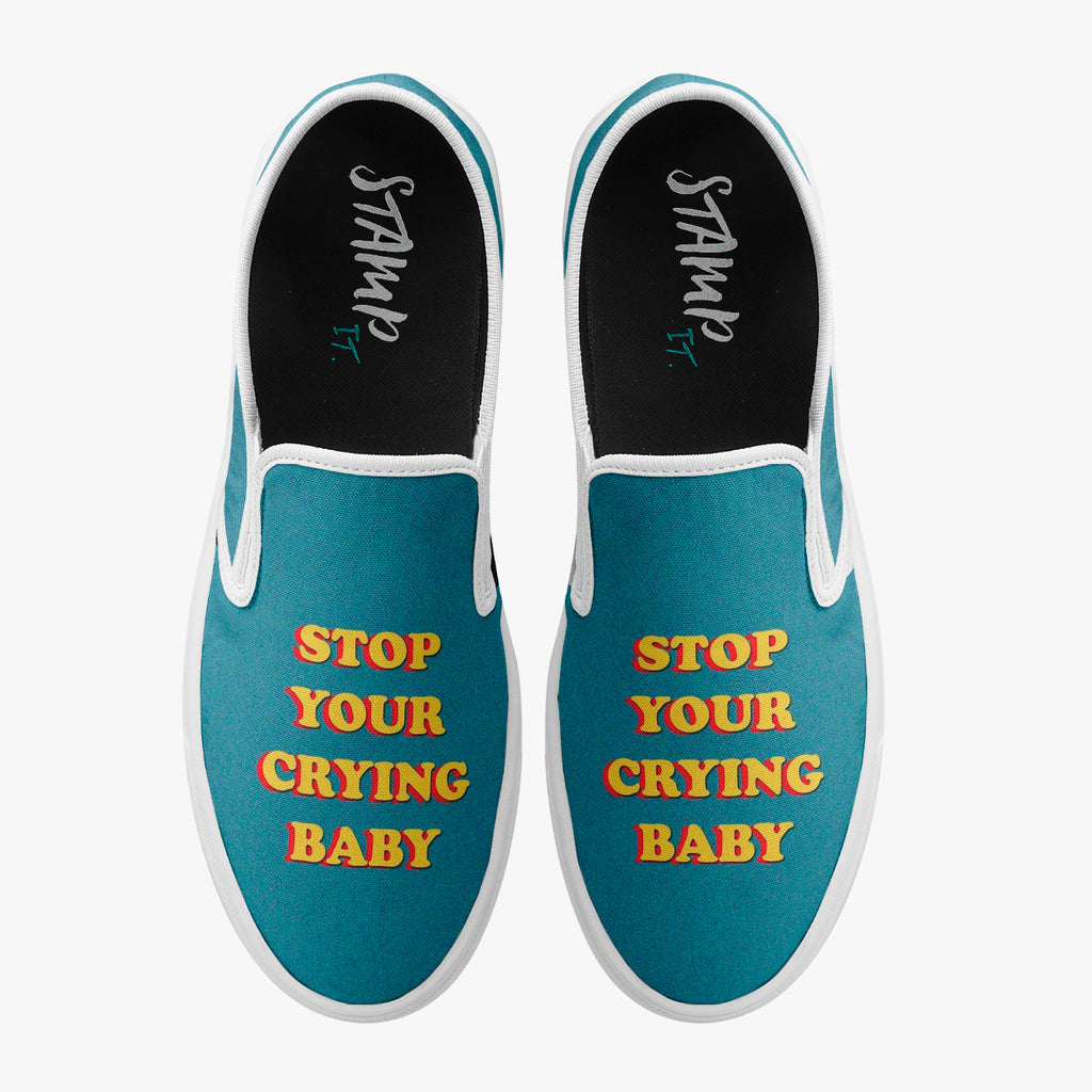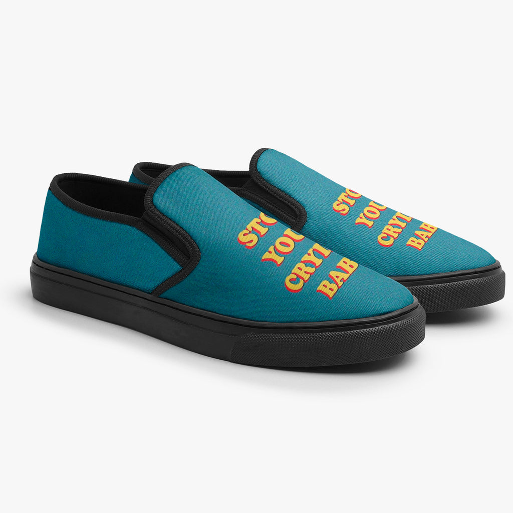 Tênis Slip On Azul Stop Your Crying Baby Abstrato