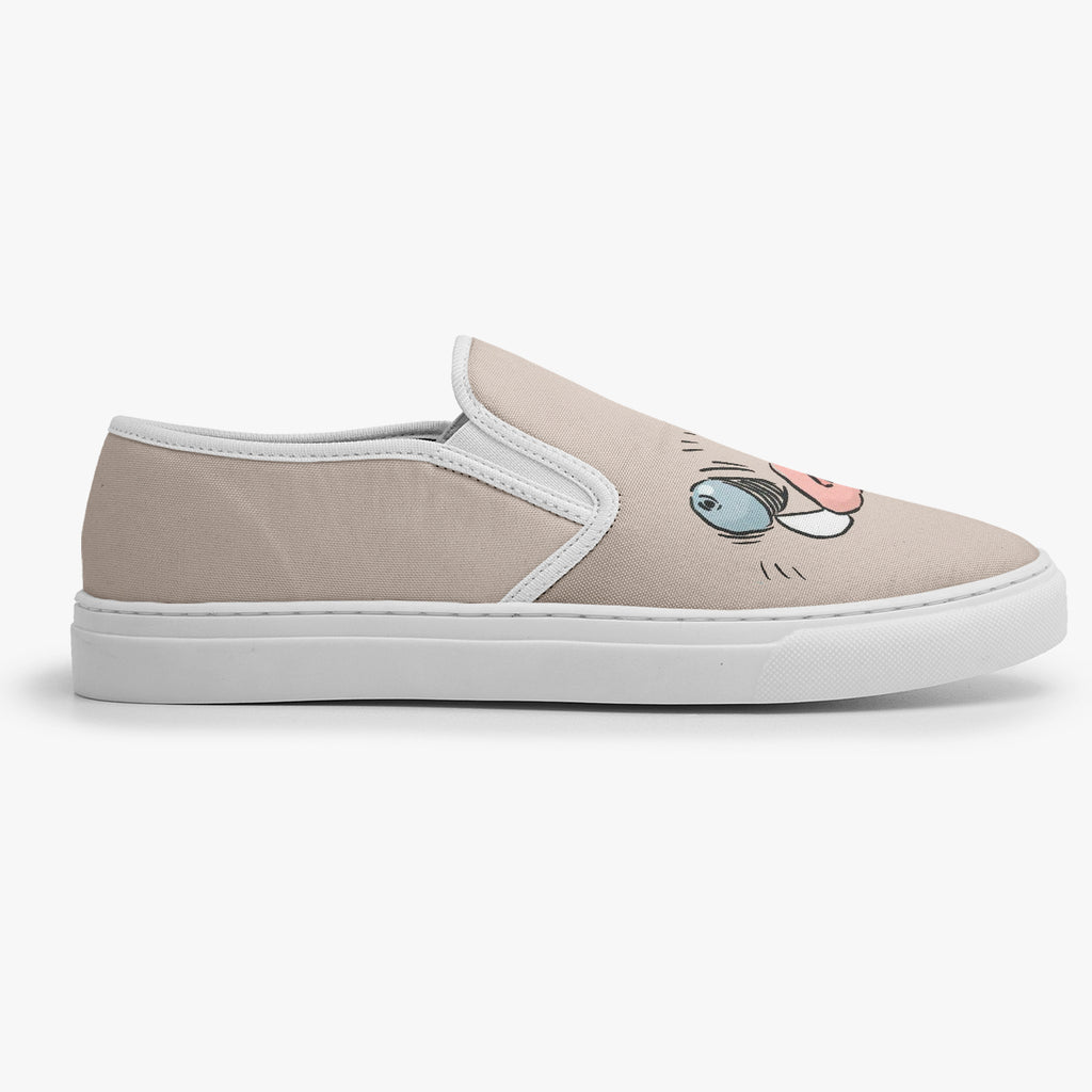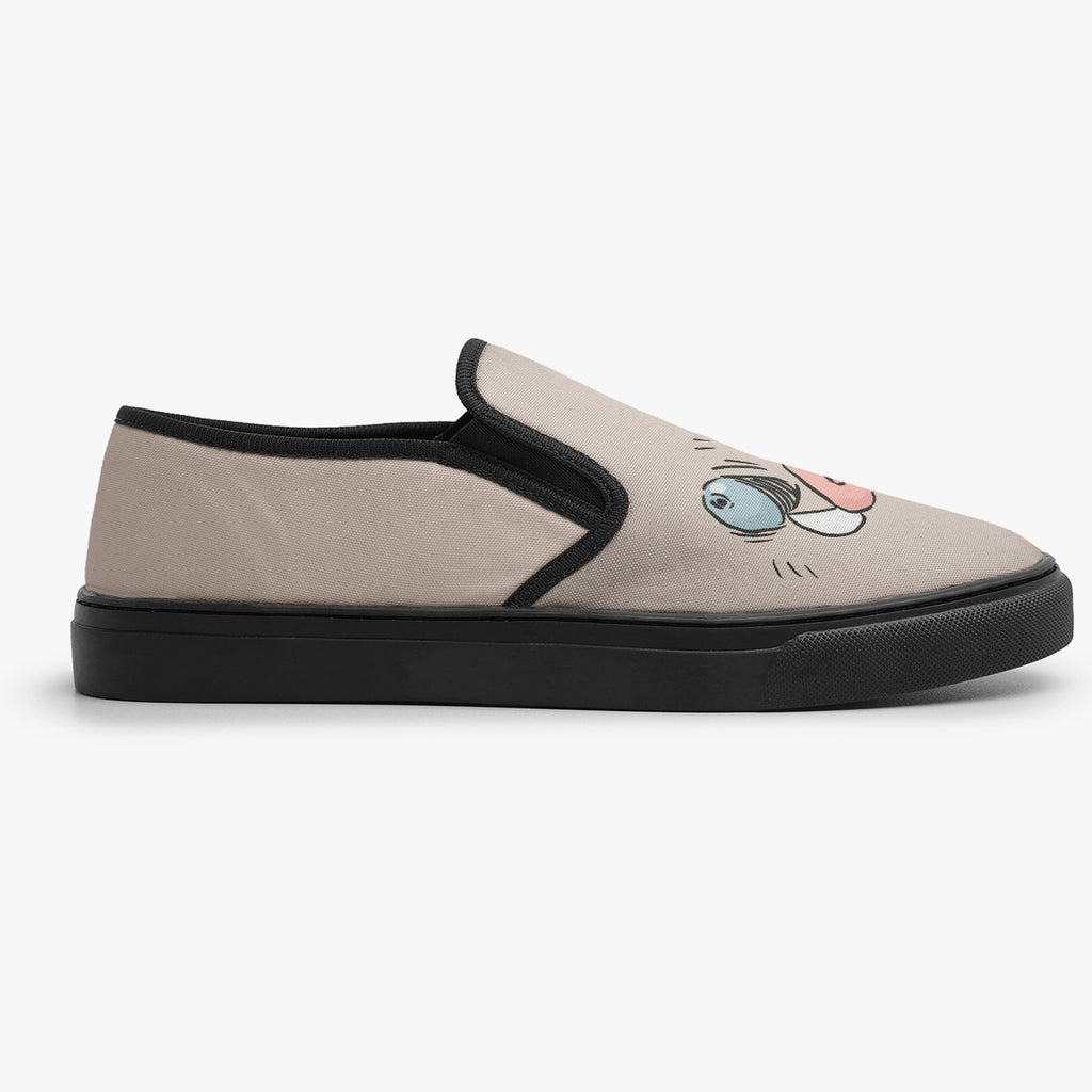 Tênis Slip On Bege Kimetsu No Yaiba Demon Slayer Máscara Inosuke Anime, confeccionado em lona, com cores e estampas exclusivas.