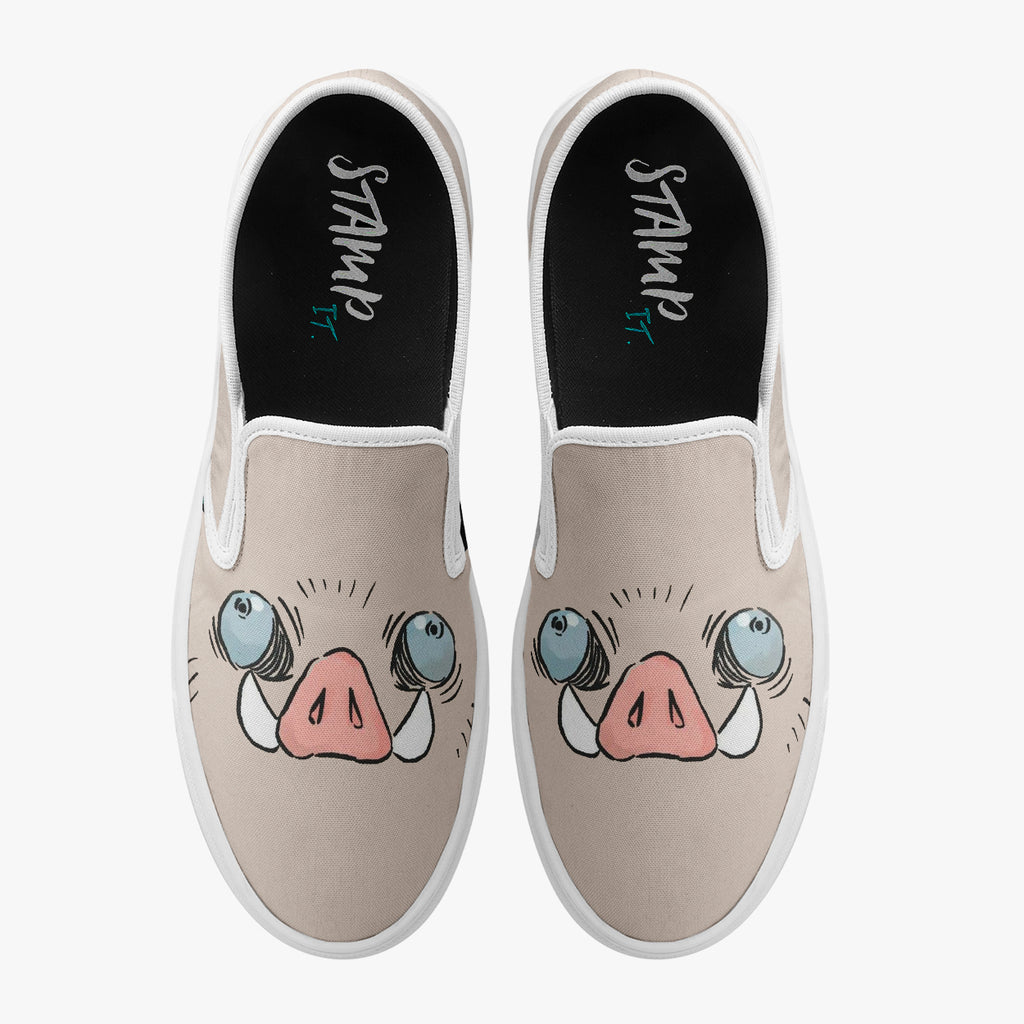 Tênis Slip On Bege Kimetsu No Yaiba Demon Slayer Máscara Inosuke Anime