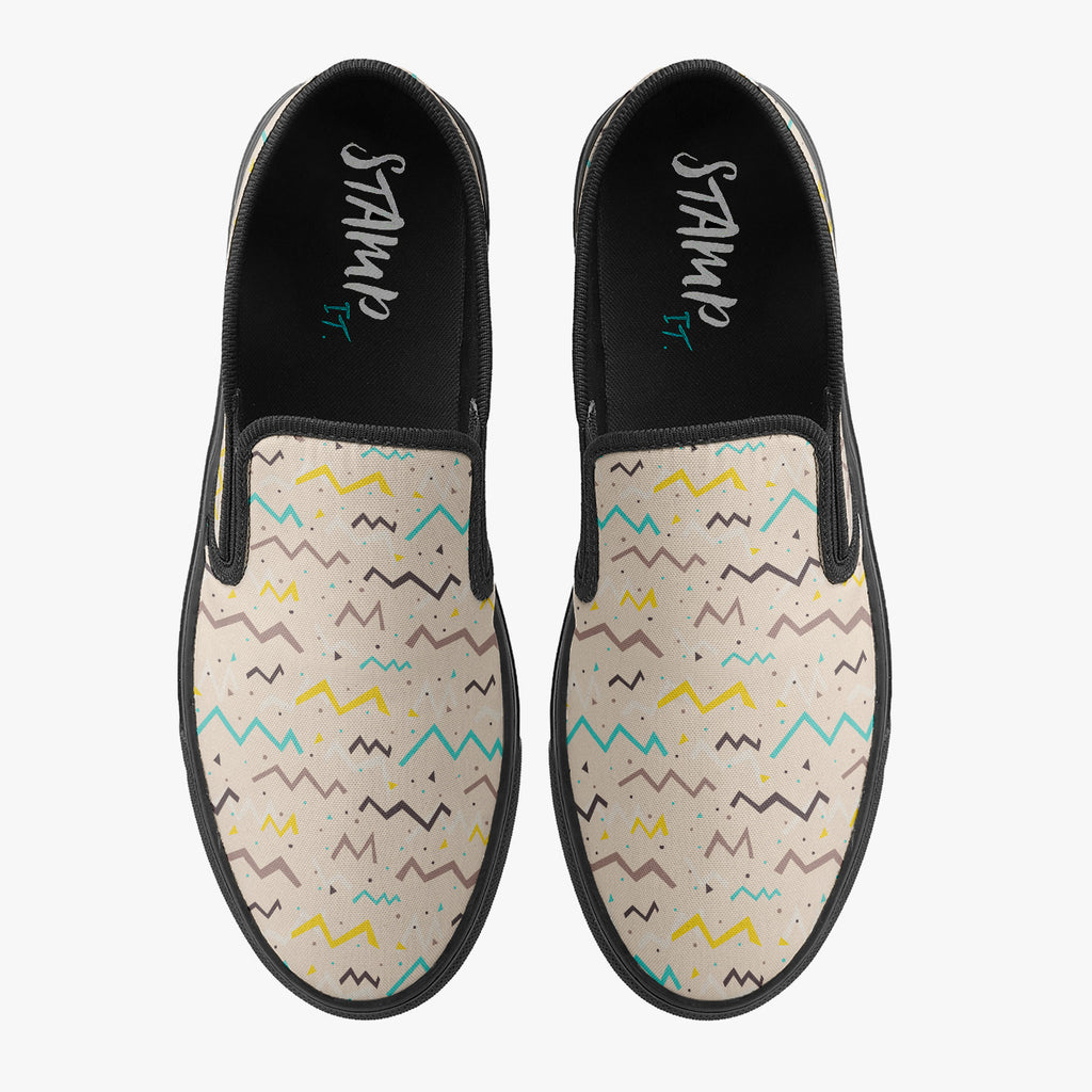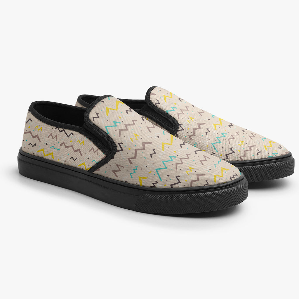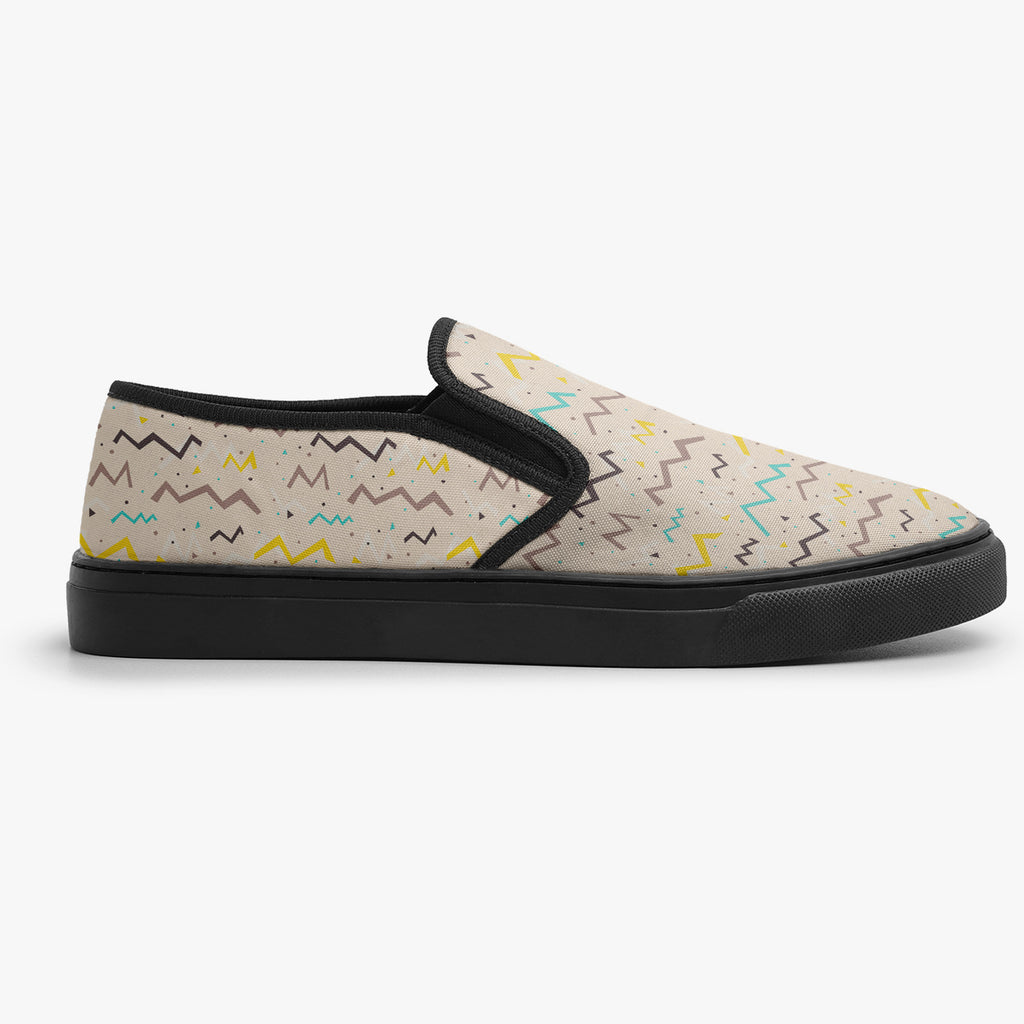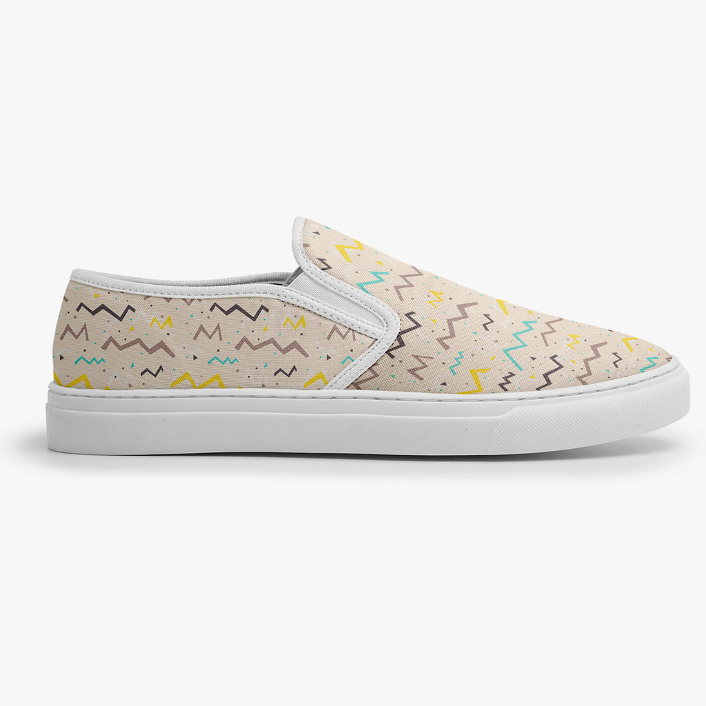 Calçado Slip On Bege Pattern Style Abstrato, confeccionado em lona, com cores e estampas exclusivas.