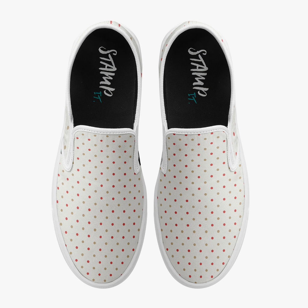 Tênis Slip On Branco Bolinhas Coloridas Anos 60 Retrô