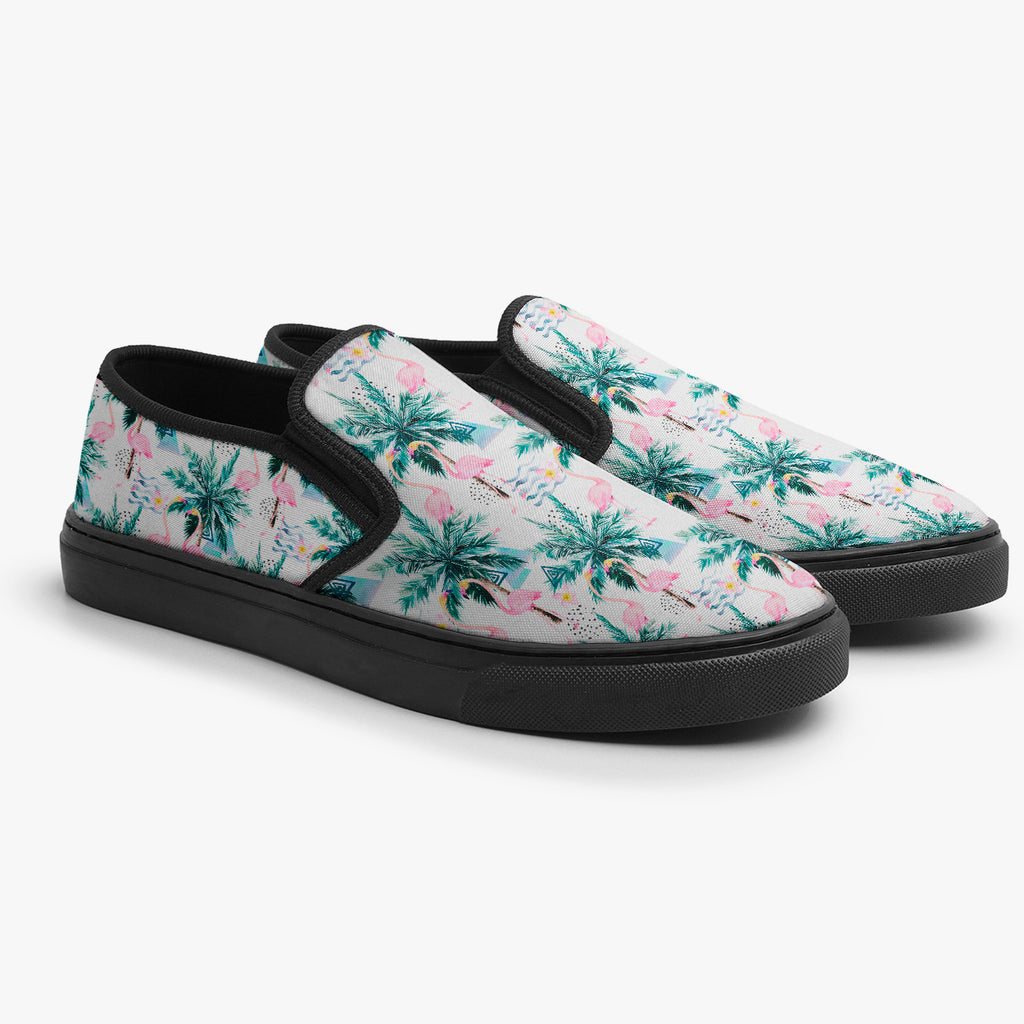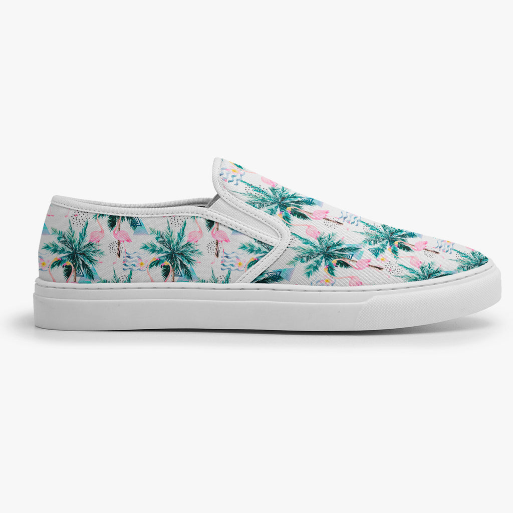Tênis Slip On Branco Floral Flamingos em Coqueiros