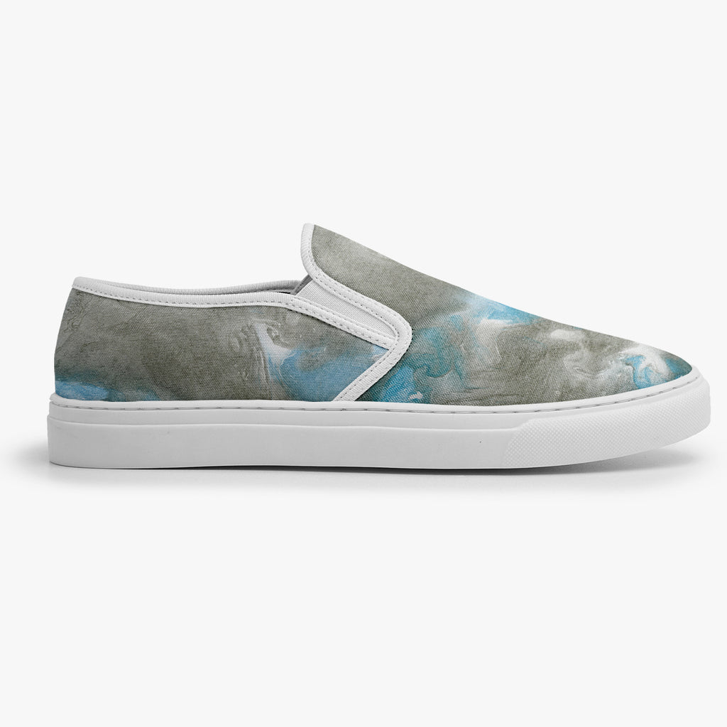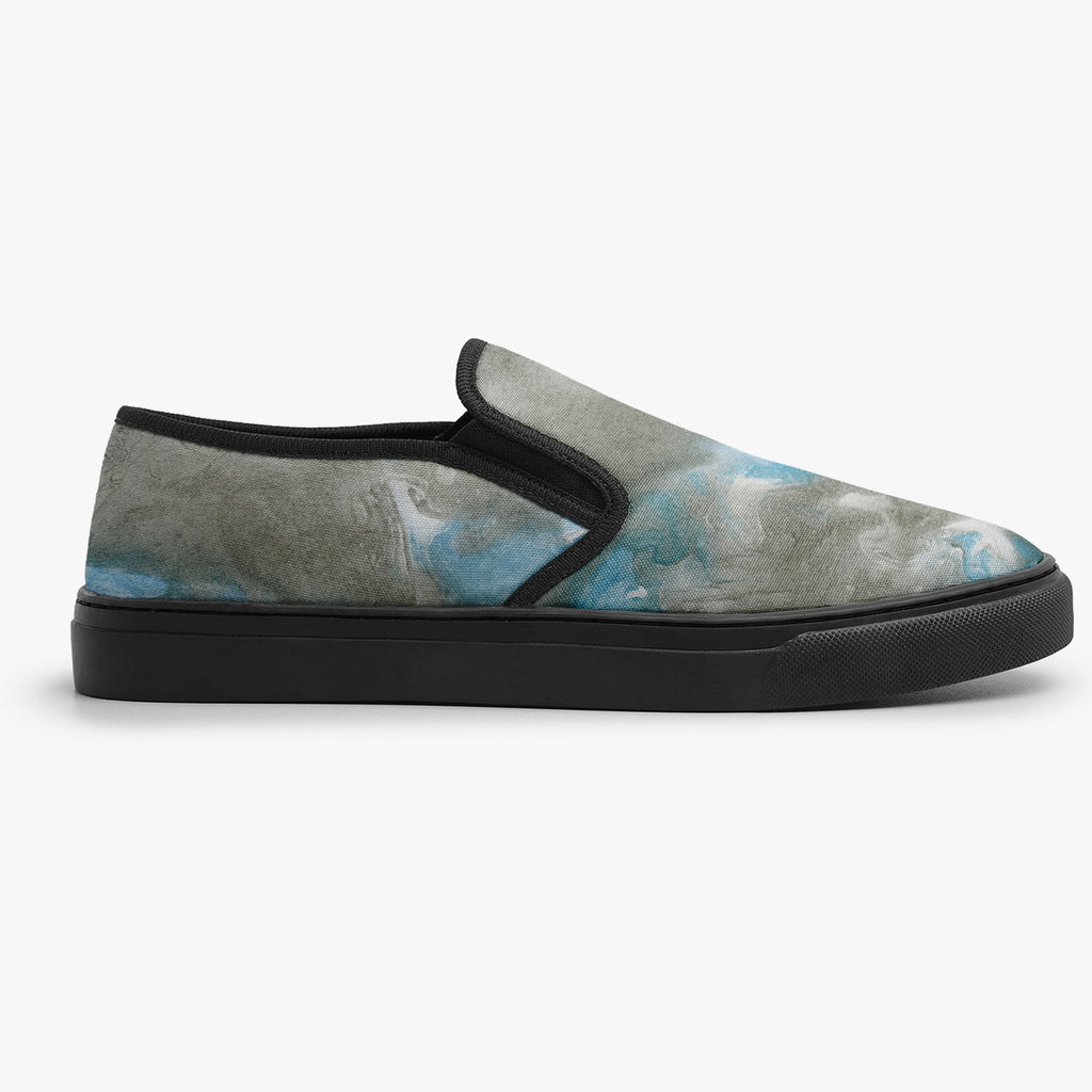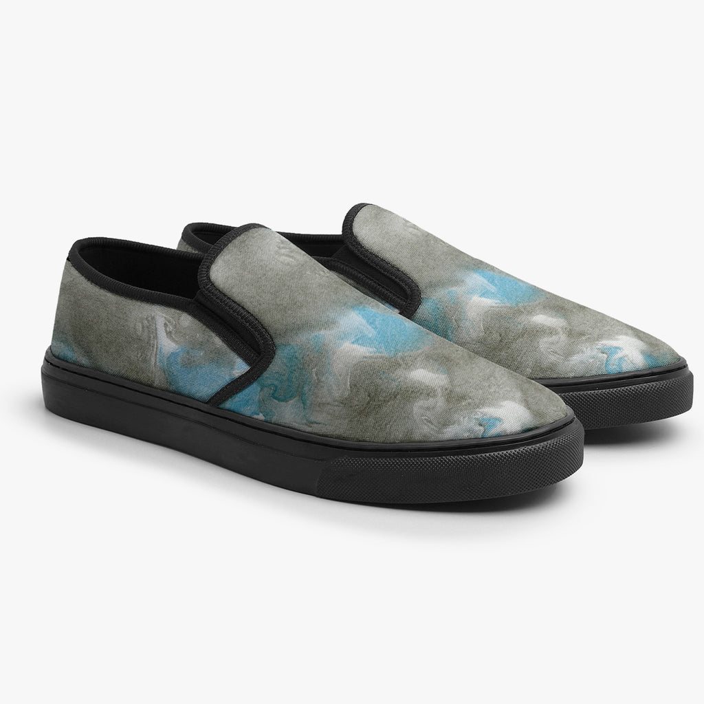 Tênis Slip On Cinza Azul Textura Aquarela Abstrato