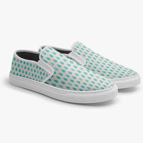 Calçado Slip On Creme Gotas D'Água Tumblr Cute Water Abstrato, confeccionado em lona, com cores e estampas exclusivas.