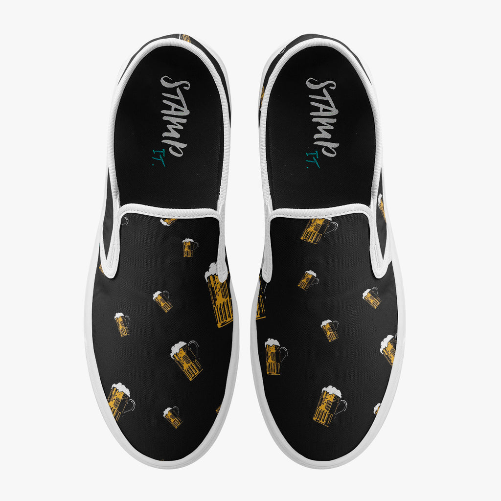 Tênis Slip On Preto Caneca Cerveja Abstrato