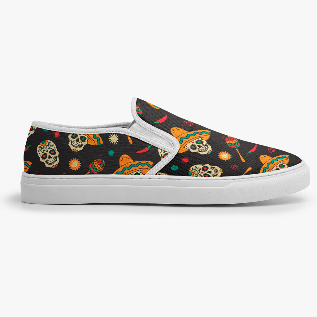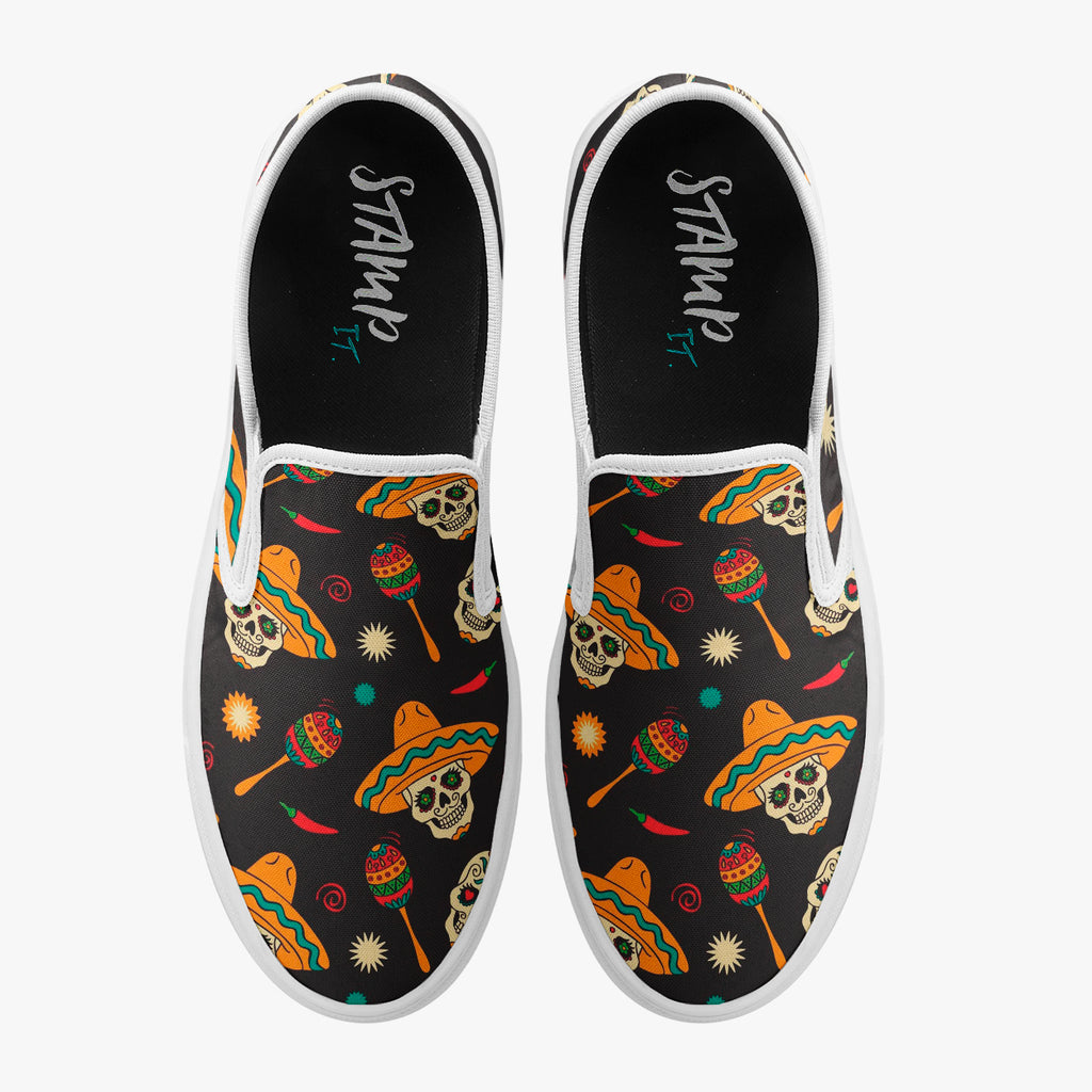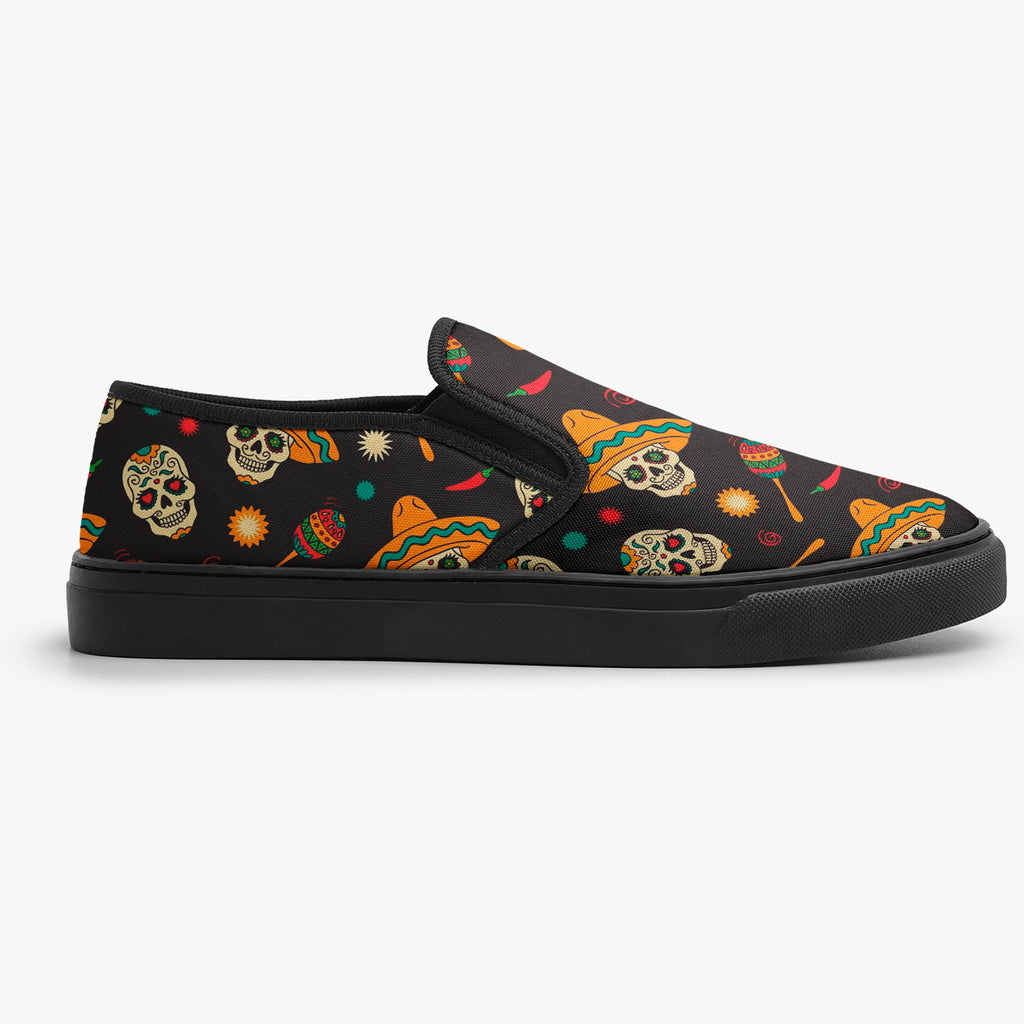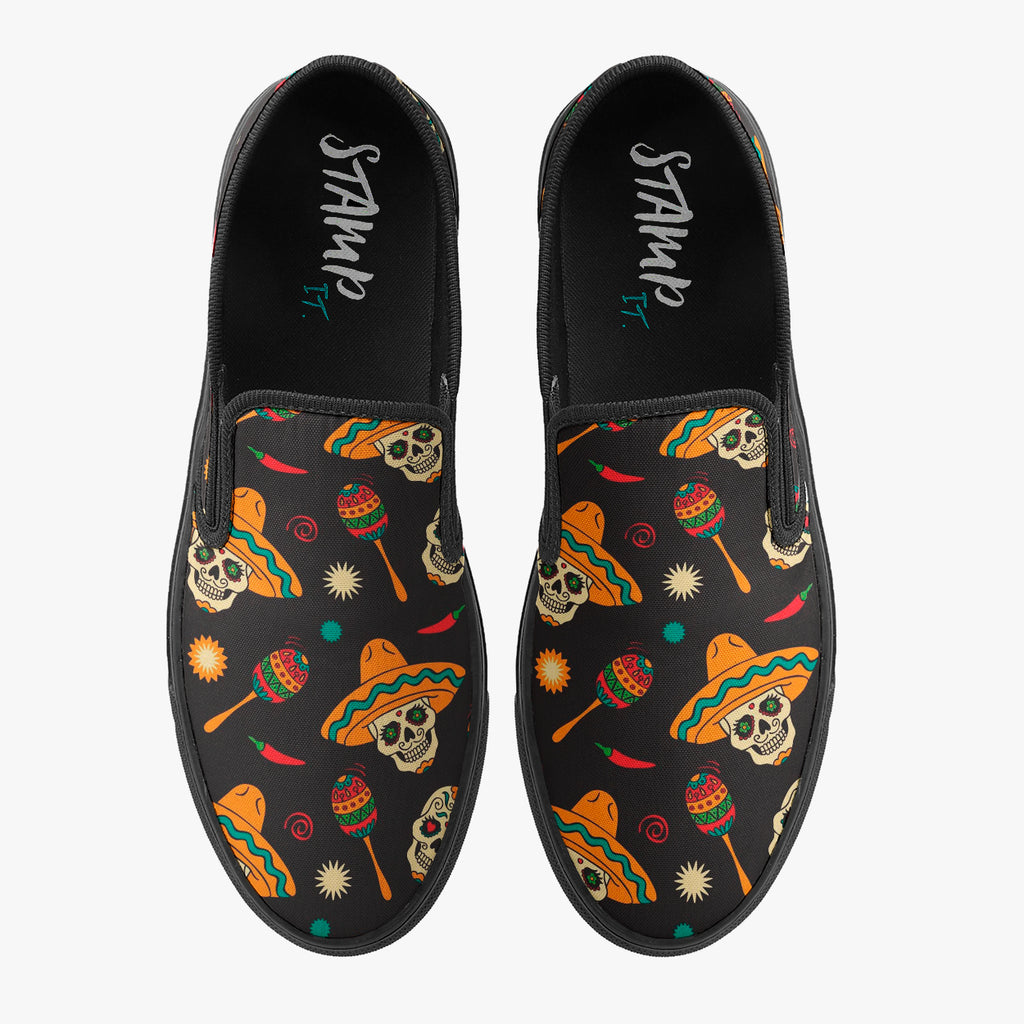 Tênis Slip On Preto Caveiras Mexicana Maracas Caveiras