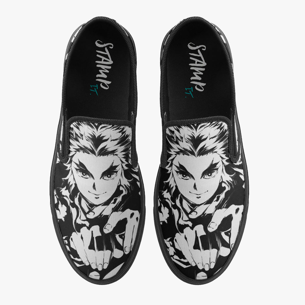 Tênis Slip On Preto Otaku Kimetsu No Yaiba Preto e Branco