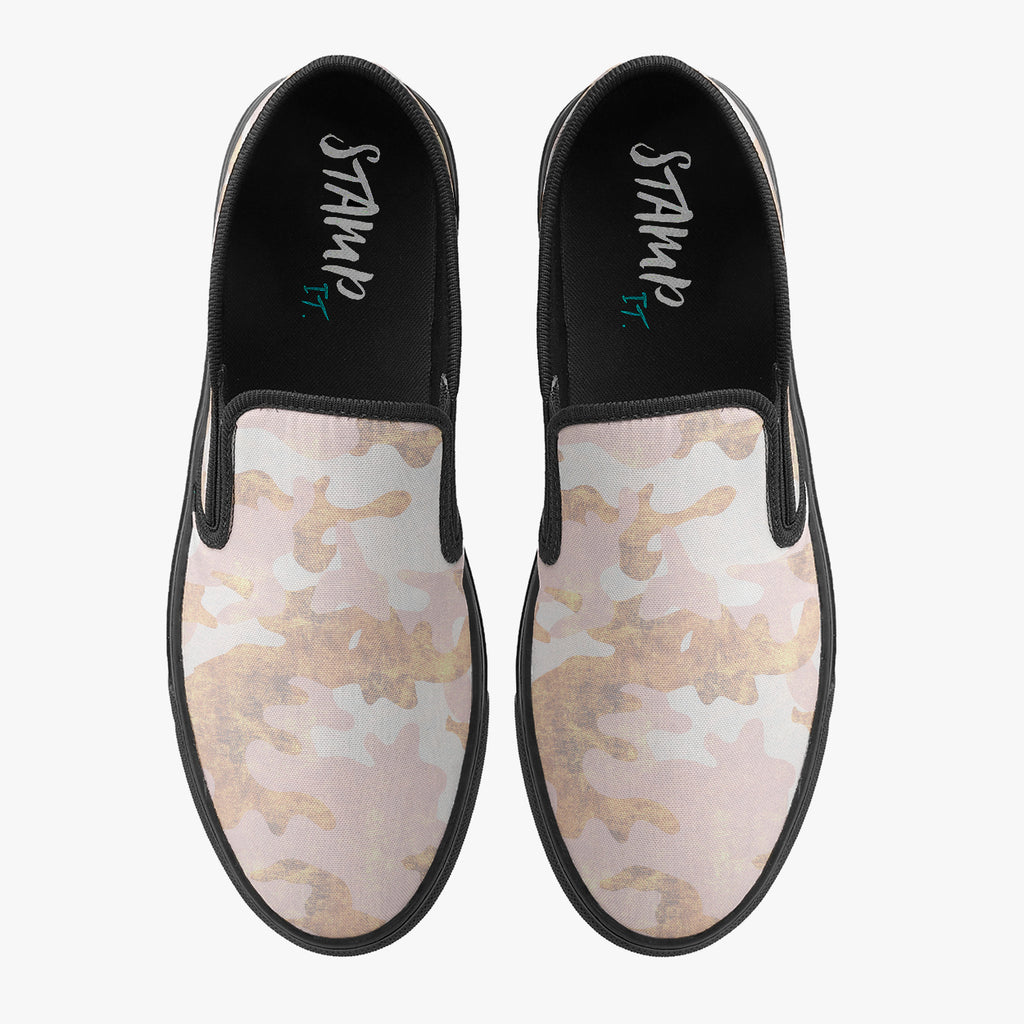 Tênis Slip On Rosa Camuflado Militar Abstrato