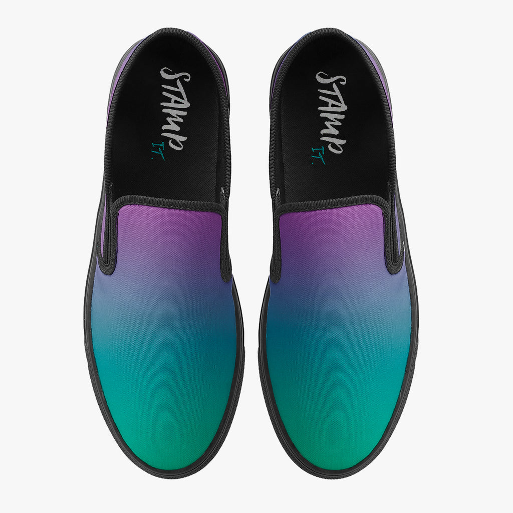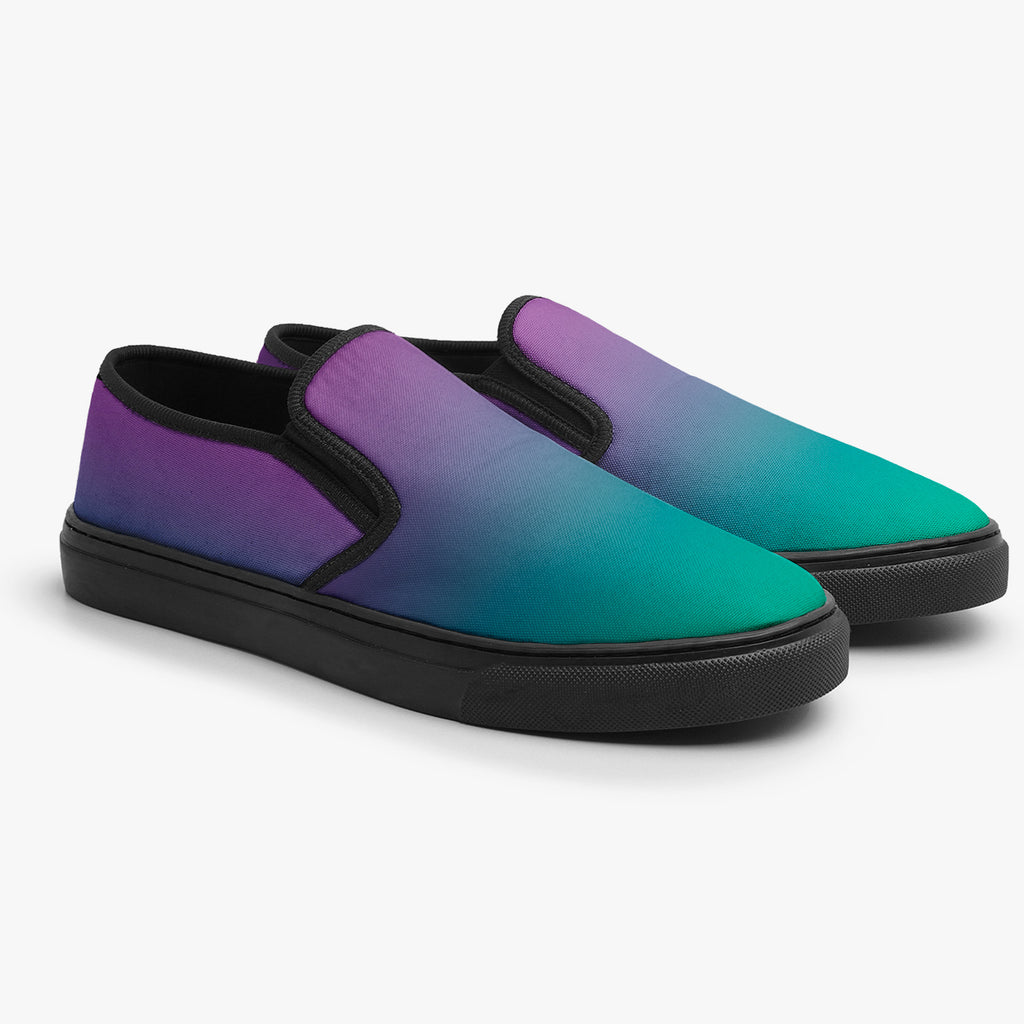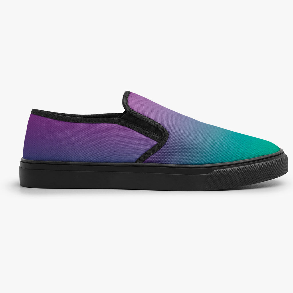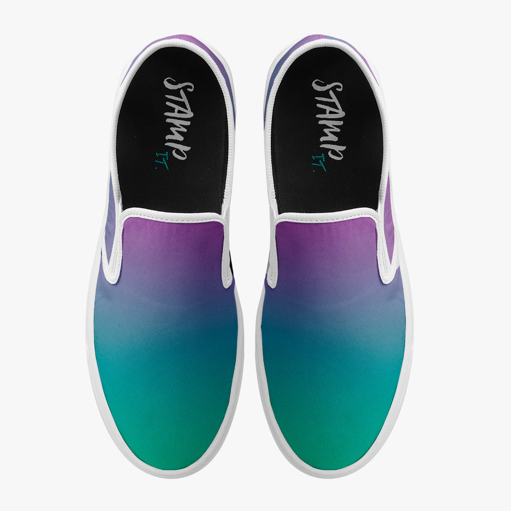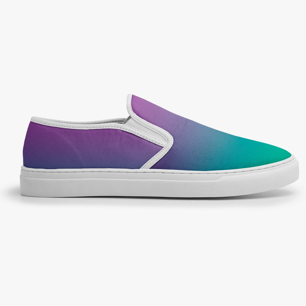 Calçado Slip On Roxo e Azul Degradê Purple Colorido, confeccionado em lona, com cores e estampas exclusivas.