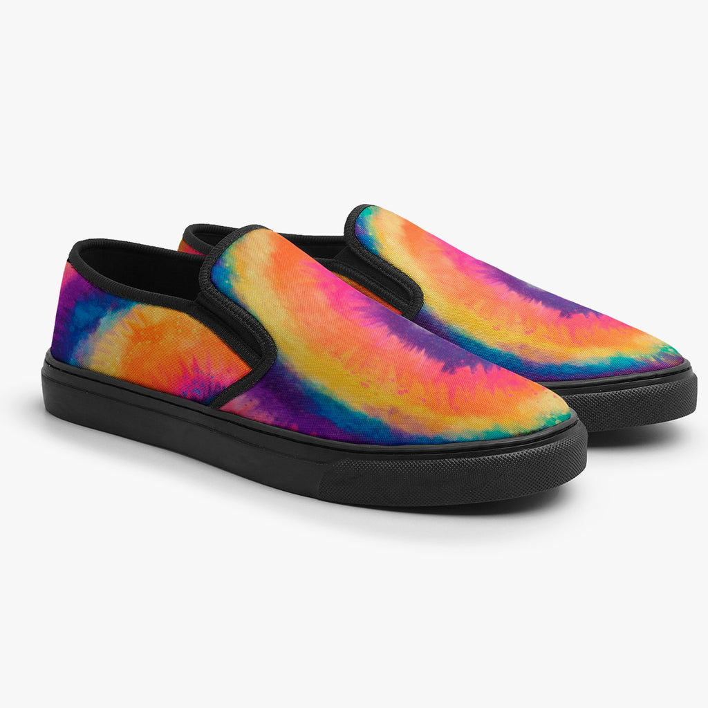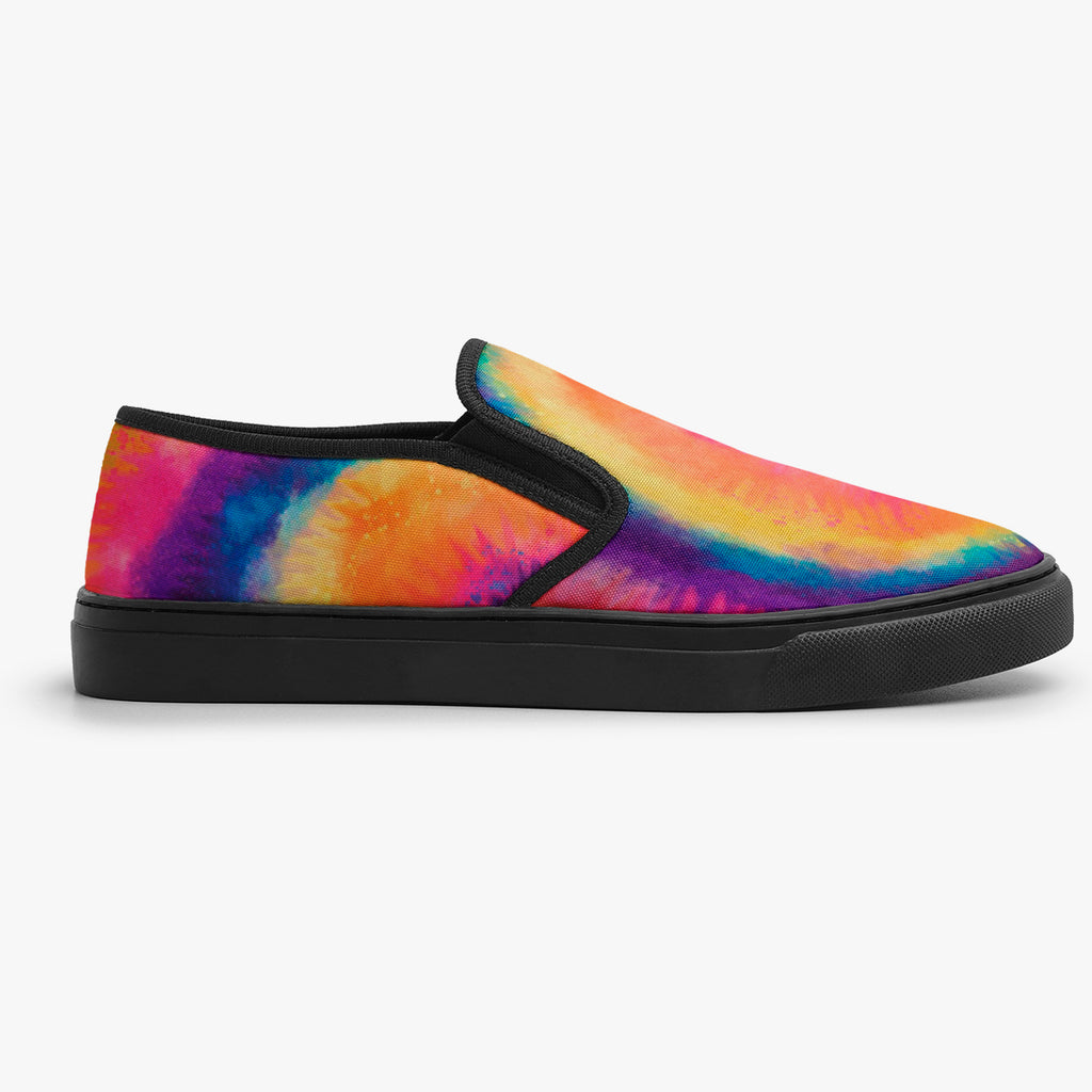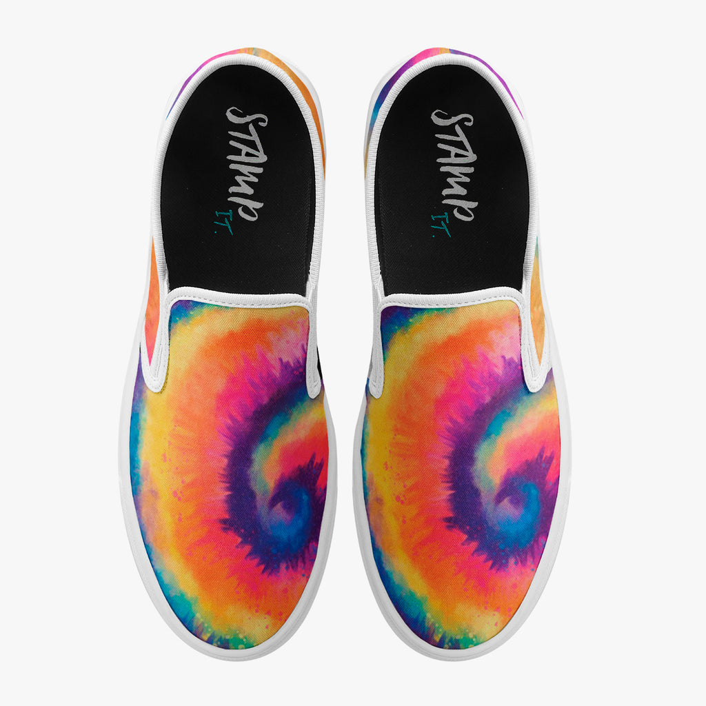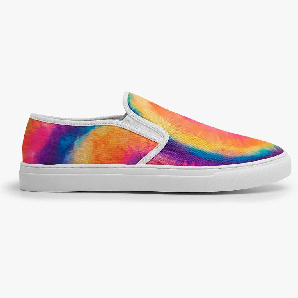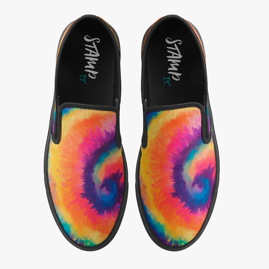 Calçado Slip On Tie Dye Colorido Manchado, confeccionado em lona, com cores e estampas exclusivas.