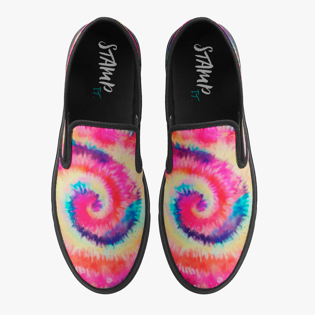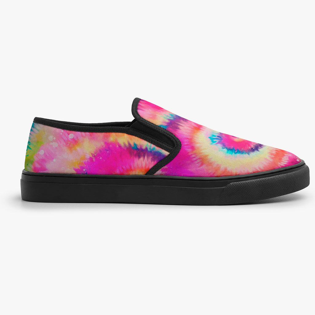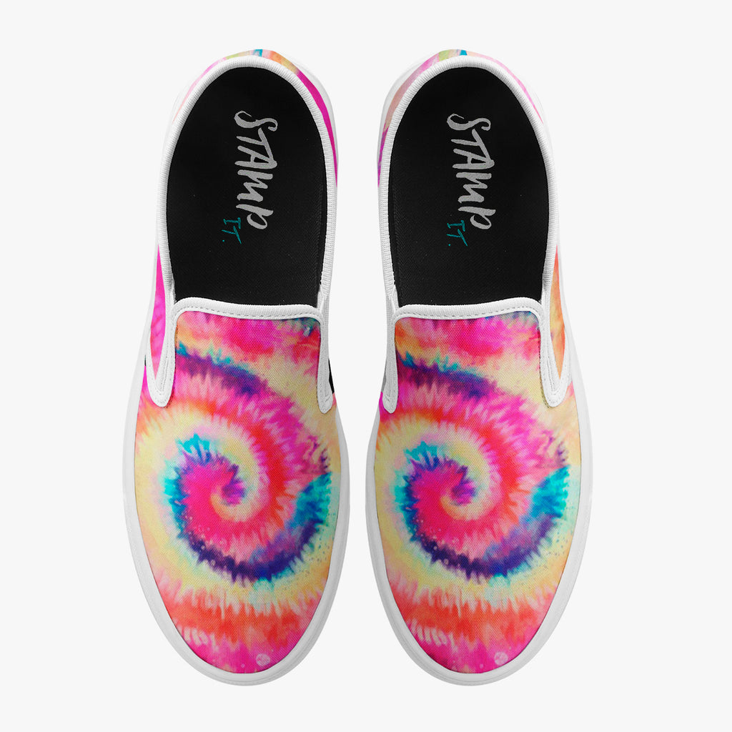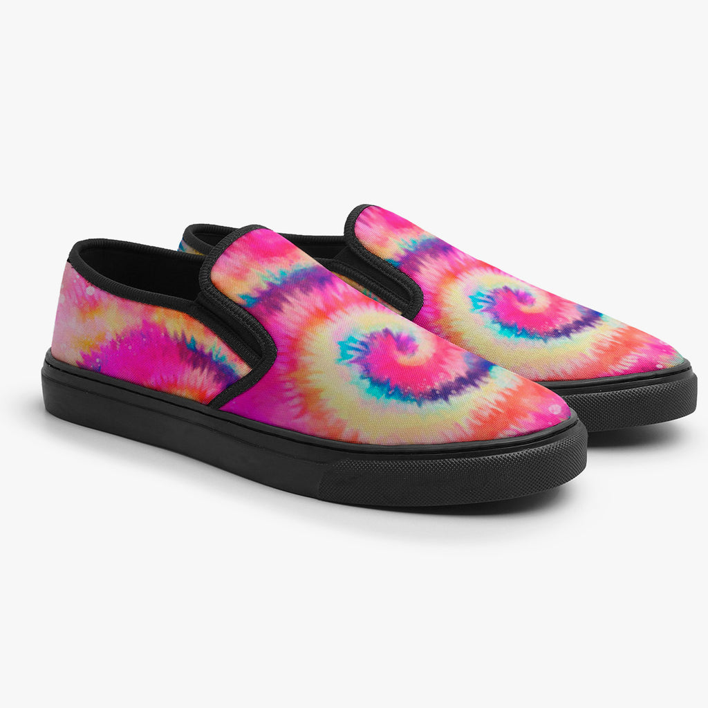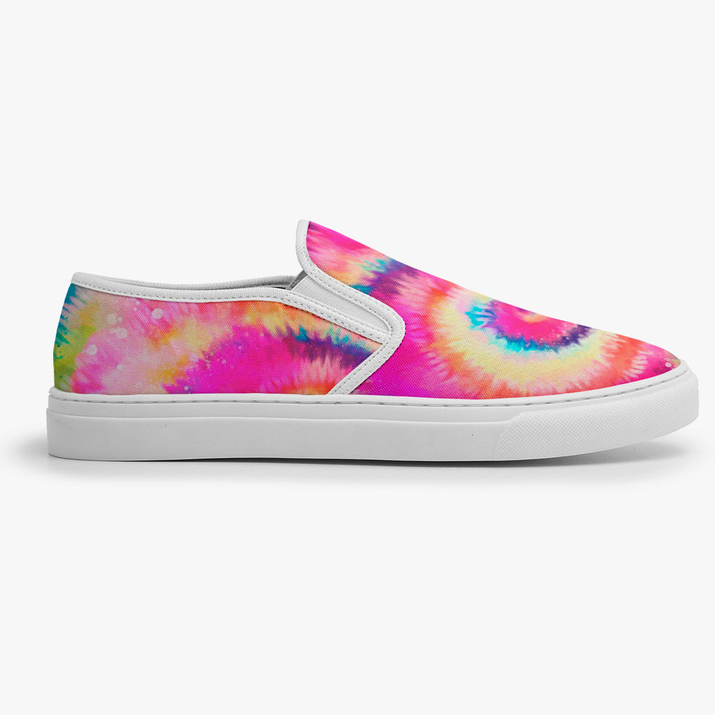 Calçado Slip On Tie Dye Rosa, confeccionado em lona, com cores e estampas exclusivas.