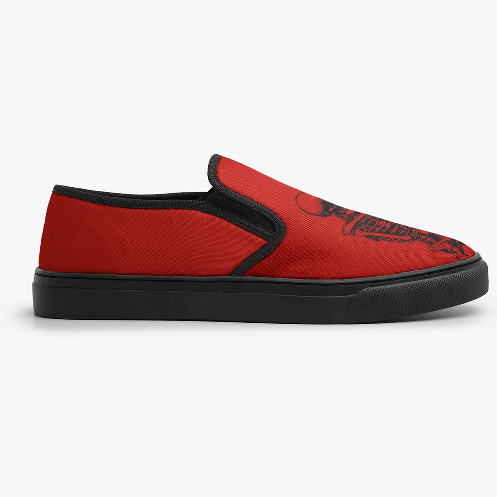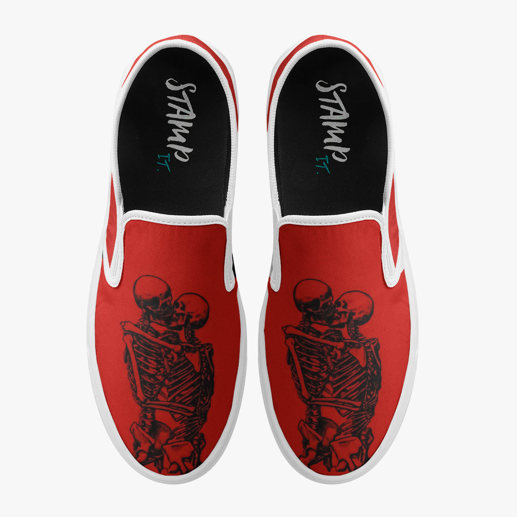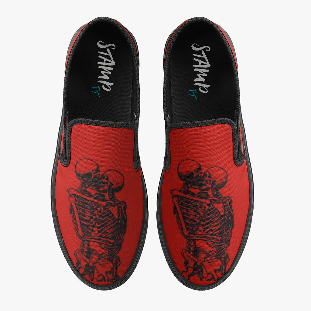 Tênis Slip On Vermelho Beijo Esquelético Caveiras