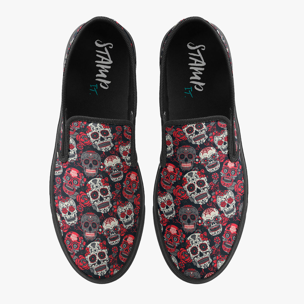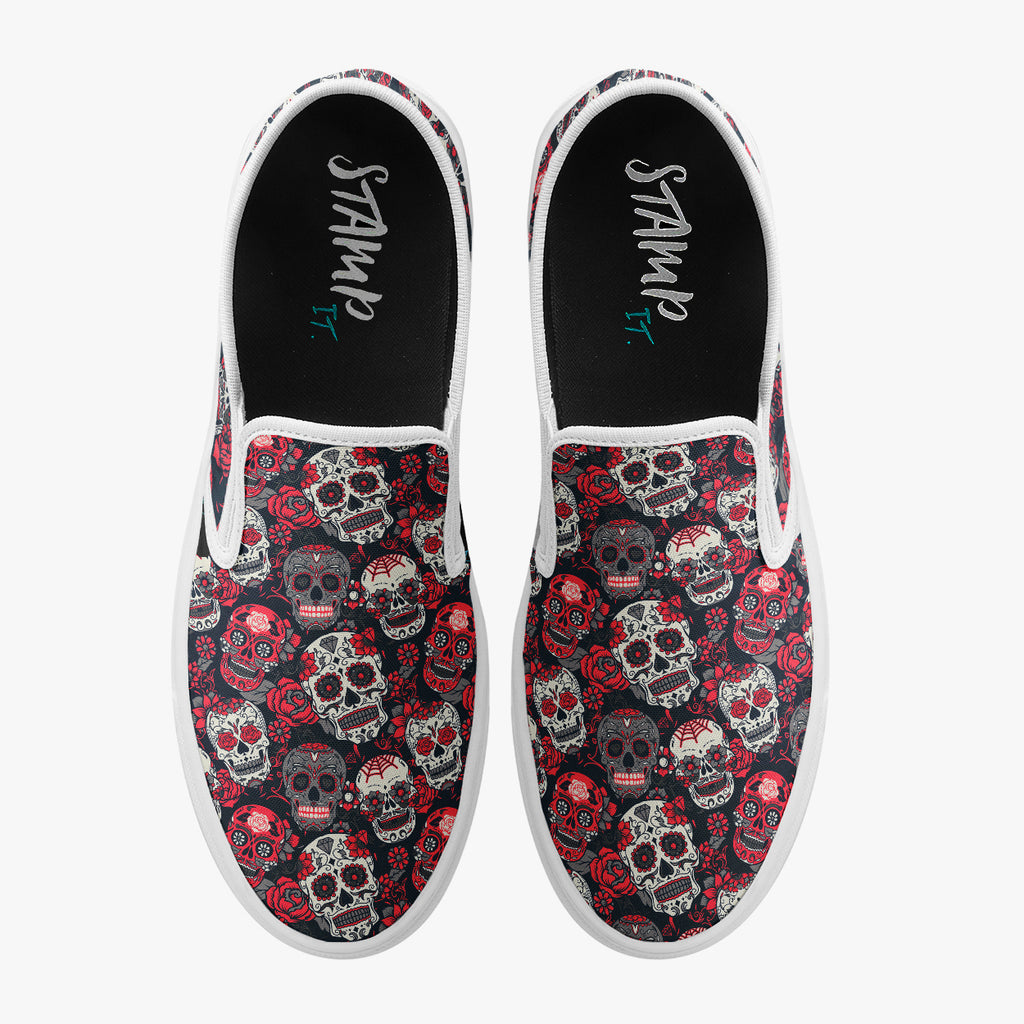 Tênis Slip On Vermelho Caveiras Mexicanas
