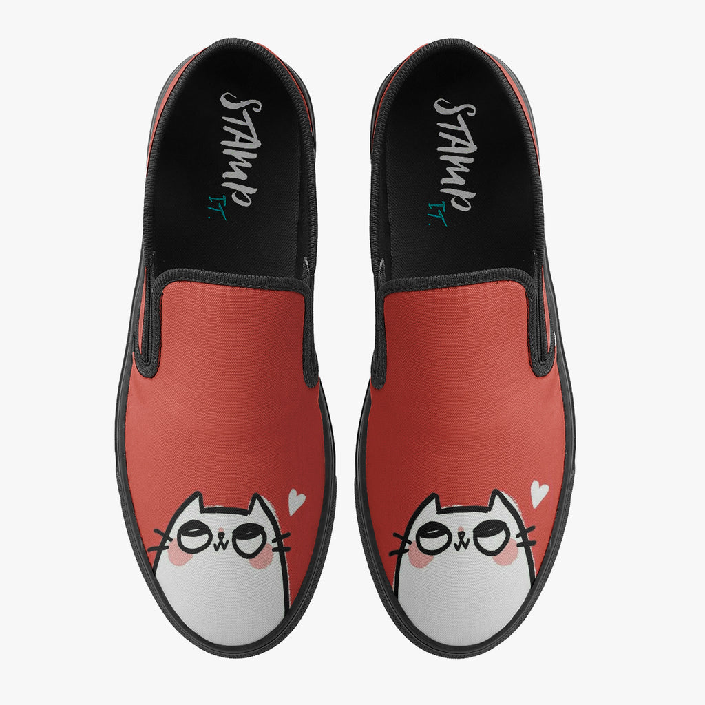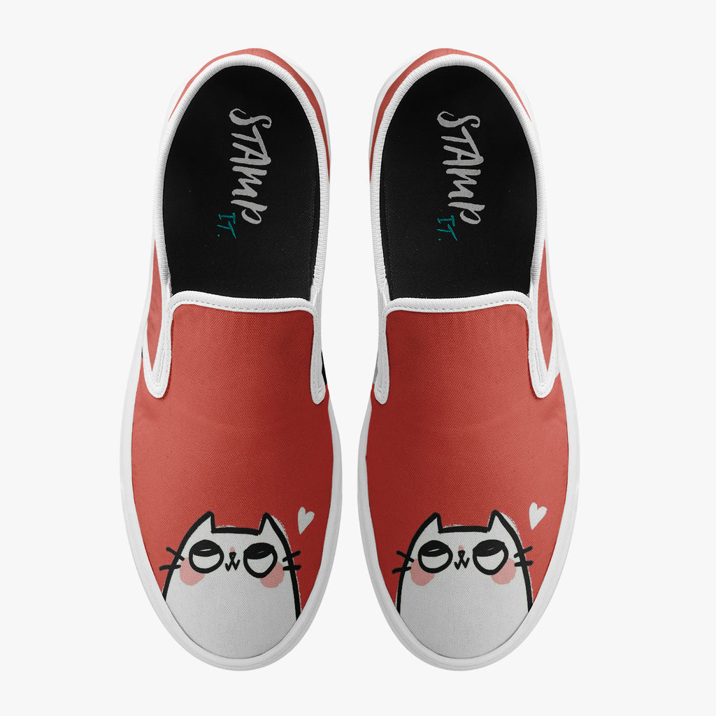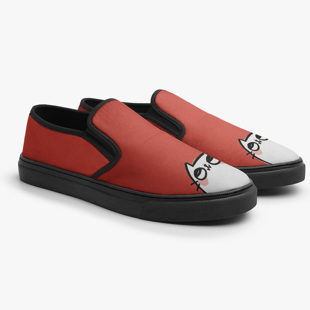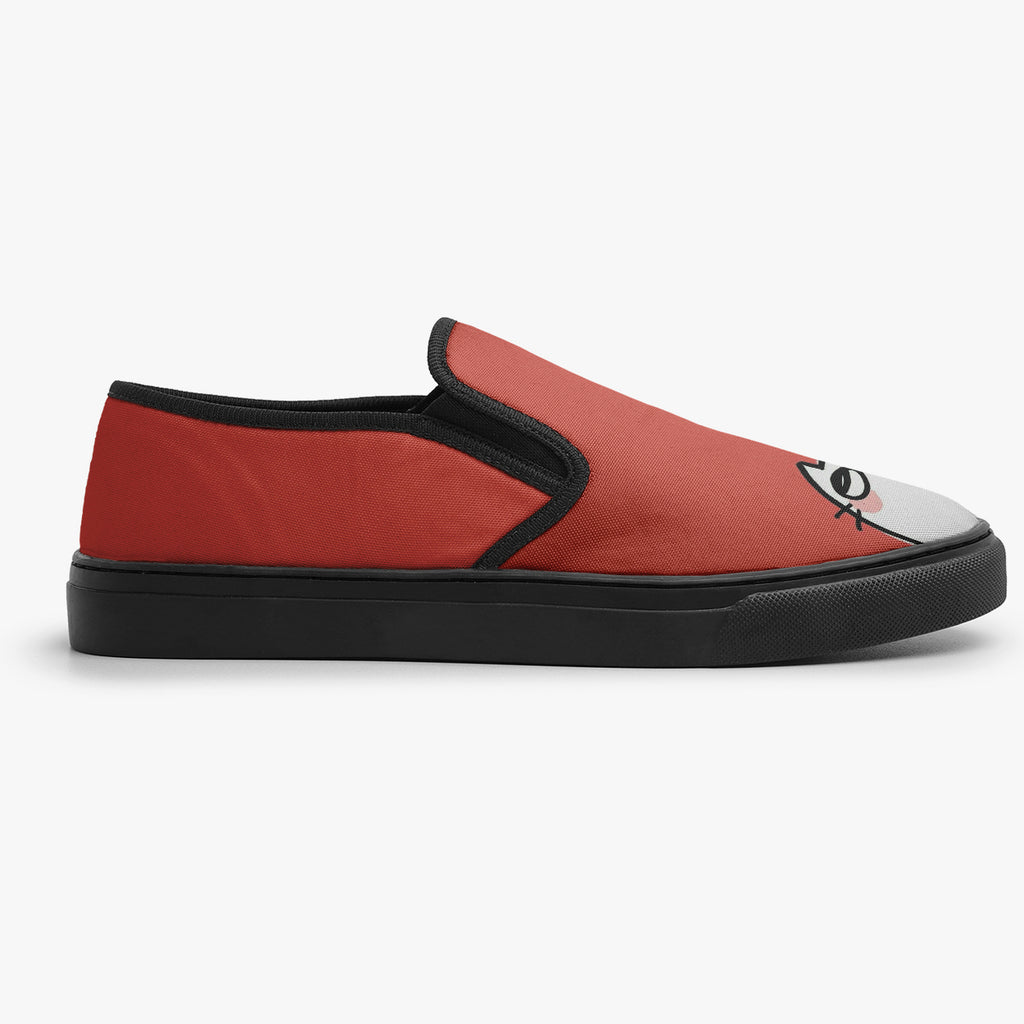 Calçado Slip On Vermelho Gato Tumblr Cute Animais, confeccionado em lona, com cores e estampas exclusivas.