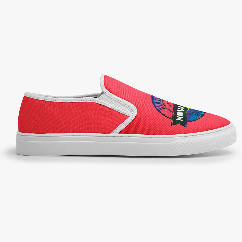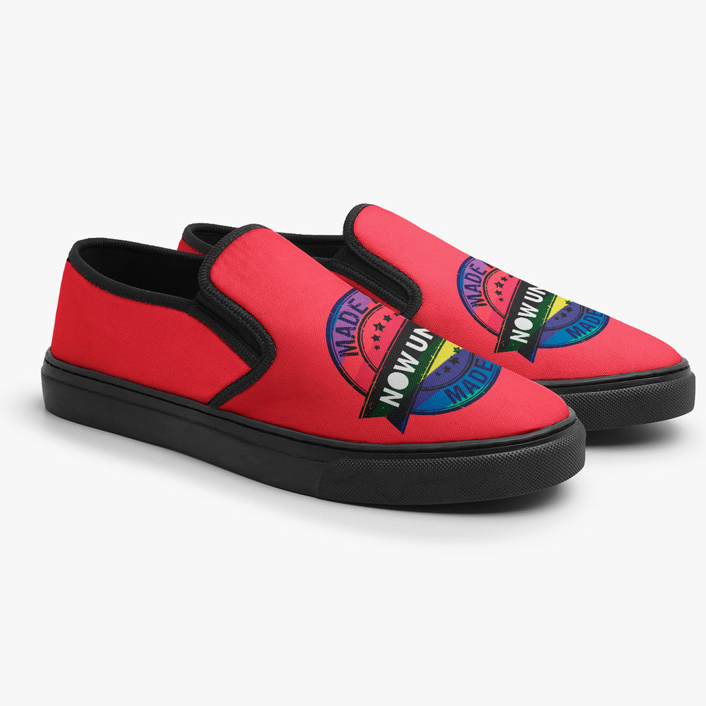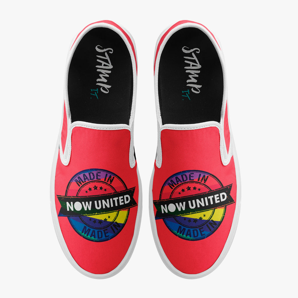 Calçado Slip On Vermelho Now United Global Come Together Pop Music, confeccionado em lona, com cores e estampas exclusivas.